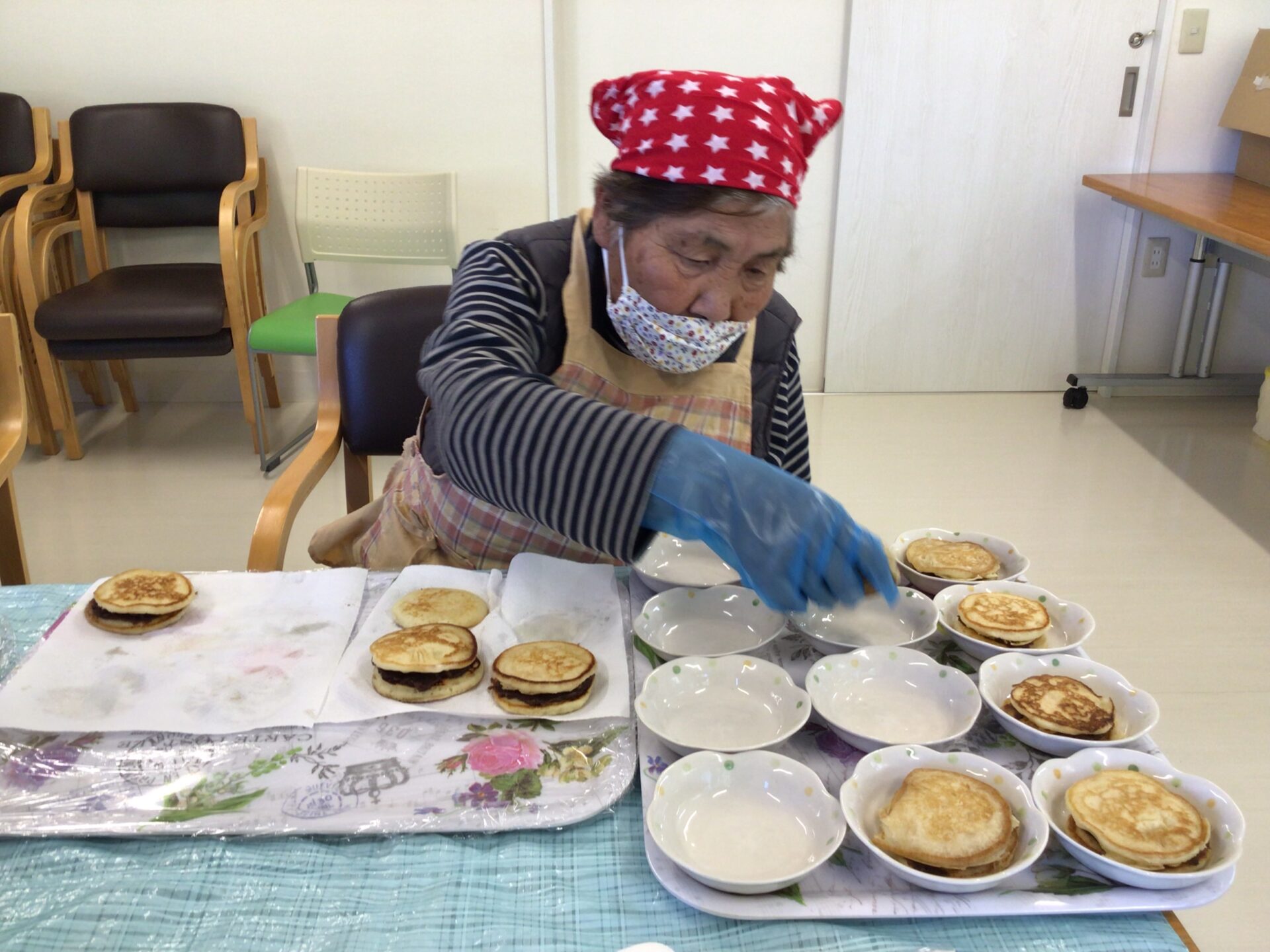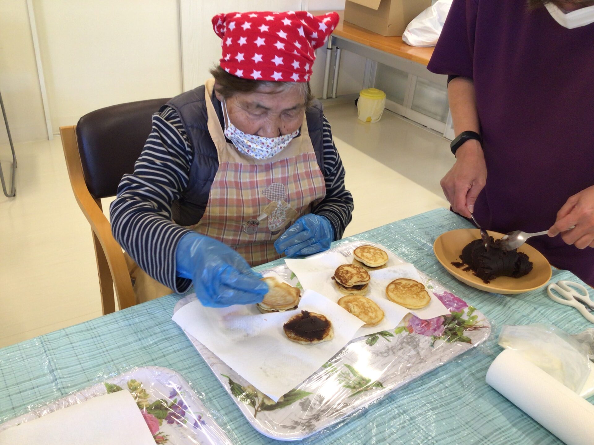 生地を混ぜたり焼いたりしてからあんこを挟んでいきます(*^^)v