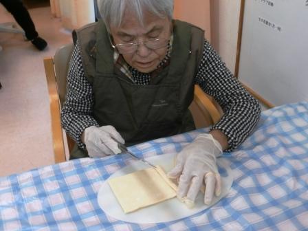 今日のおや作りは何でしょうか(・・? パイシートを均一に切って それを、ねじねじ オーブンで焼いて、ねじりパイの出来上がり(^^♪ 他のレクは、文字写し、 パットゴルフ 爪切り 等々行いました。 写真を写していると、廊下から 「おーい、わしも一枚写してくれ」と( *´艸`) 「はい、ポーズ」✌ いい顔でとれました(*^▽^*)