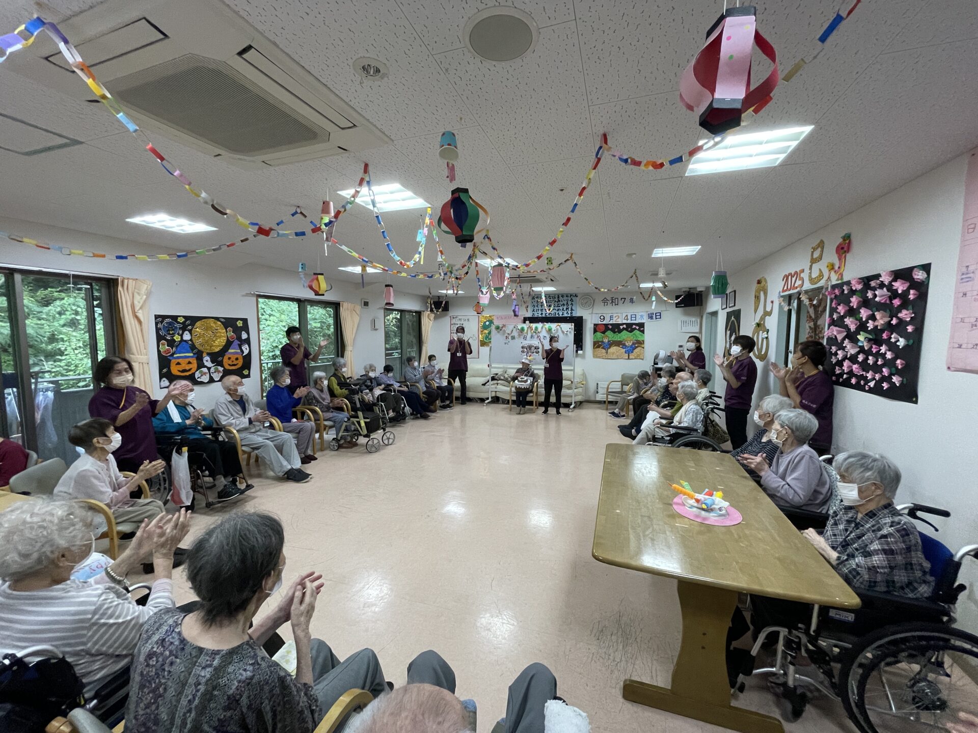 清水ヶ丘特養では9月の誕生者様のお祝いと敬老会を開催いたしました\(^o^)/