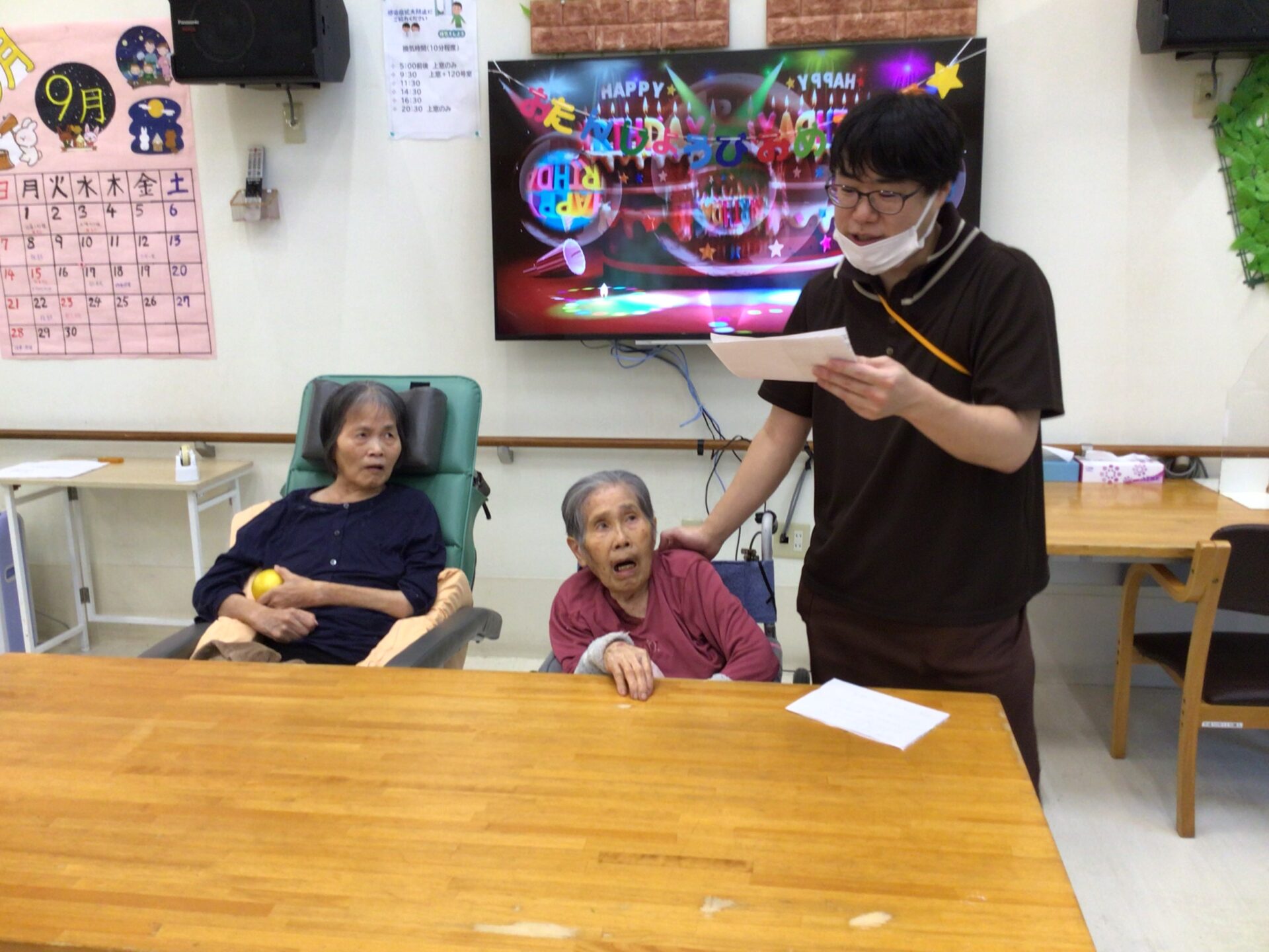 本日、デイサービスでは9月のお誕生日会と敬老会を行いました(^^)/