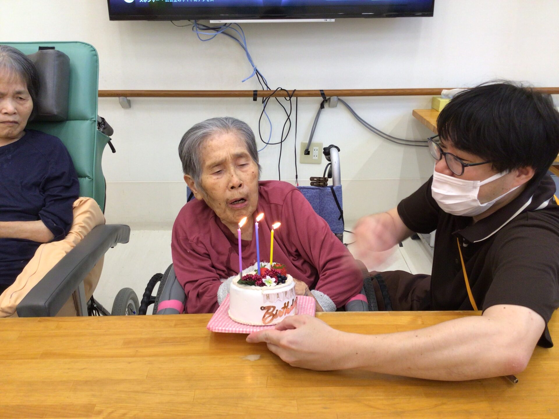 皆で歌を歌ってケーキのローソクを消してもらいます🍰