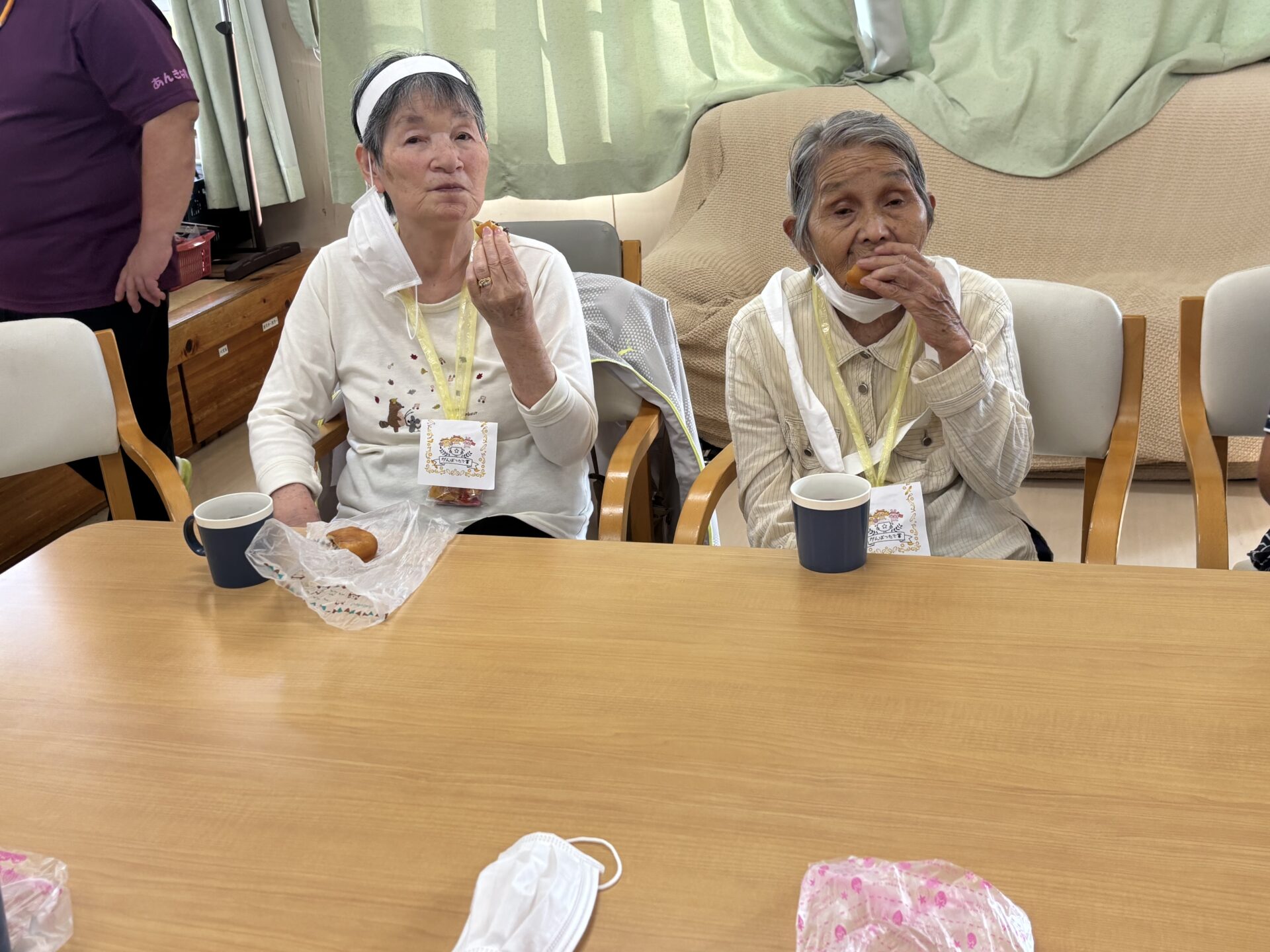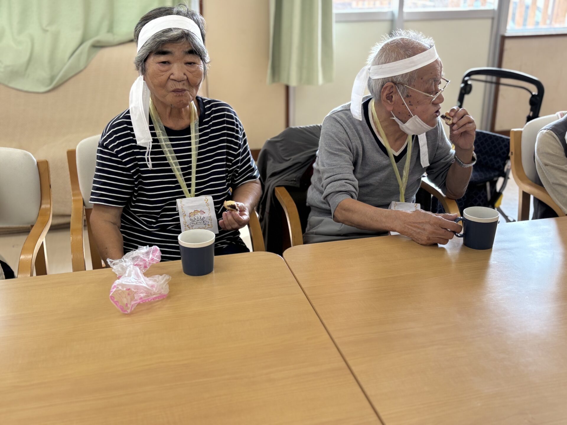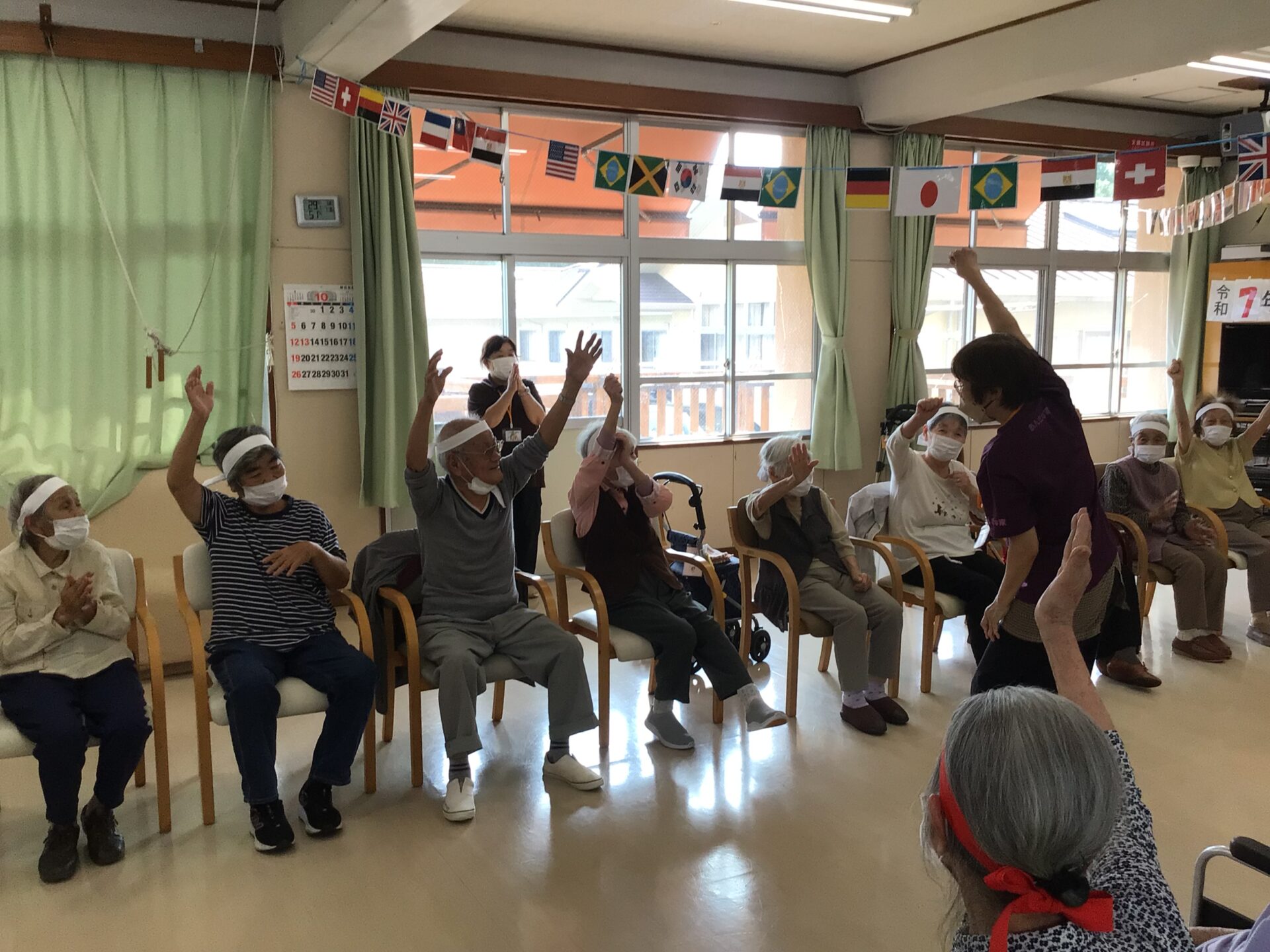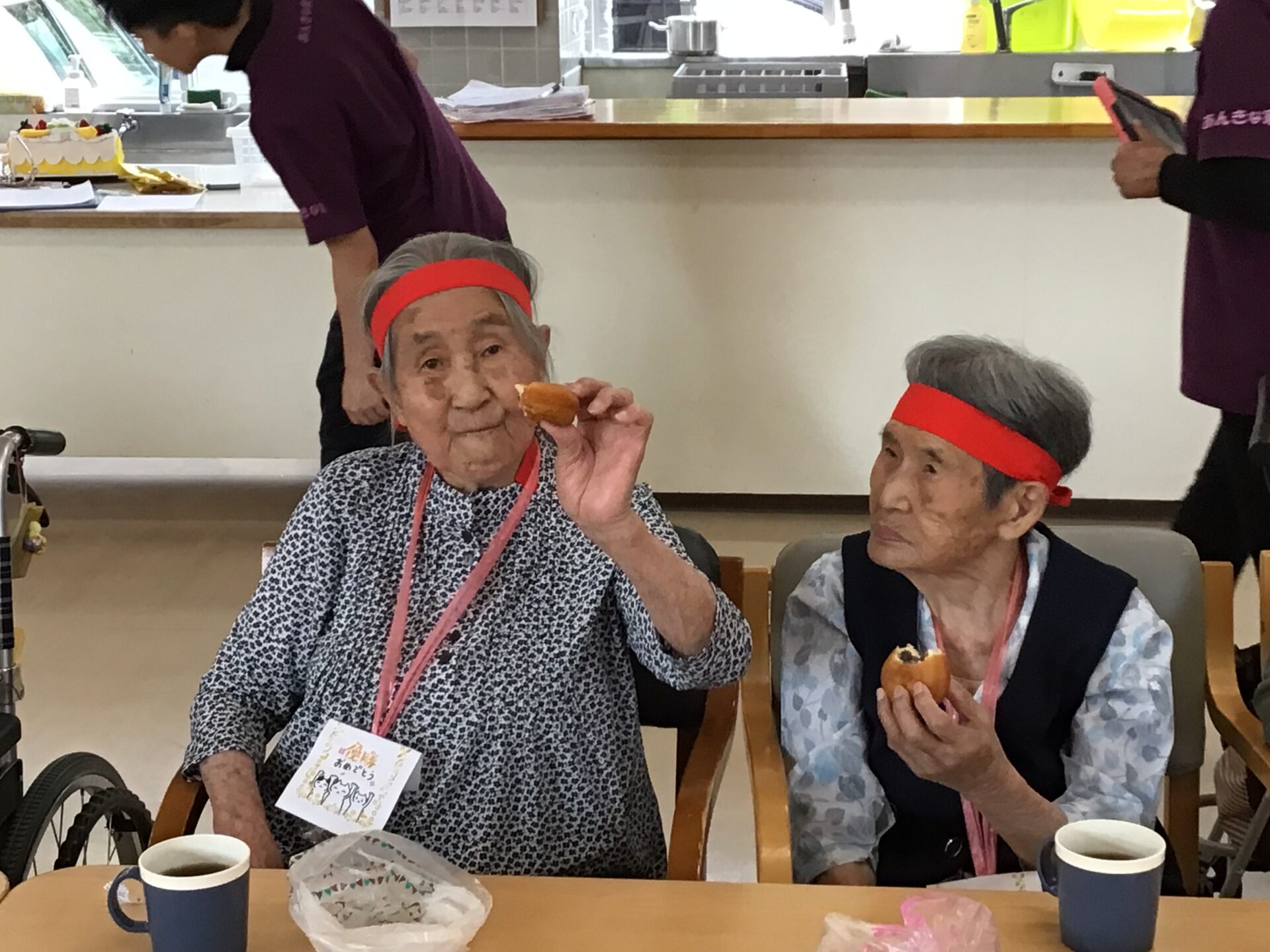運動会&誕生日会🎂 デイ☆GH合同 毎月恒例のお誕生日会🎉 今月は百寿の方を含め3名のお誕生日をお祝いしました🎂 その後は運動会赤白に分かれて気合十分です! まずは玉入れ!! 風船カーリング!! 糸巻きリレーに 軍手綱引き 大接戦でした。 パン食い競争はとても白熱しました。 最後は皆で美味しくいただきました😋😋 今年も無事みんな元気に運動会を開催できました!! (人”▽`)ありがとうございます☆