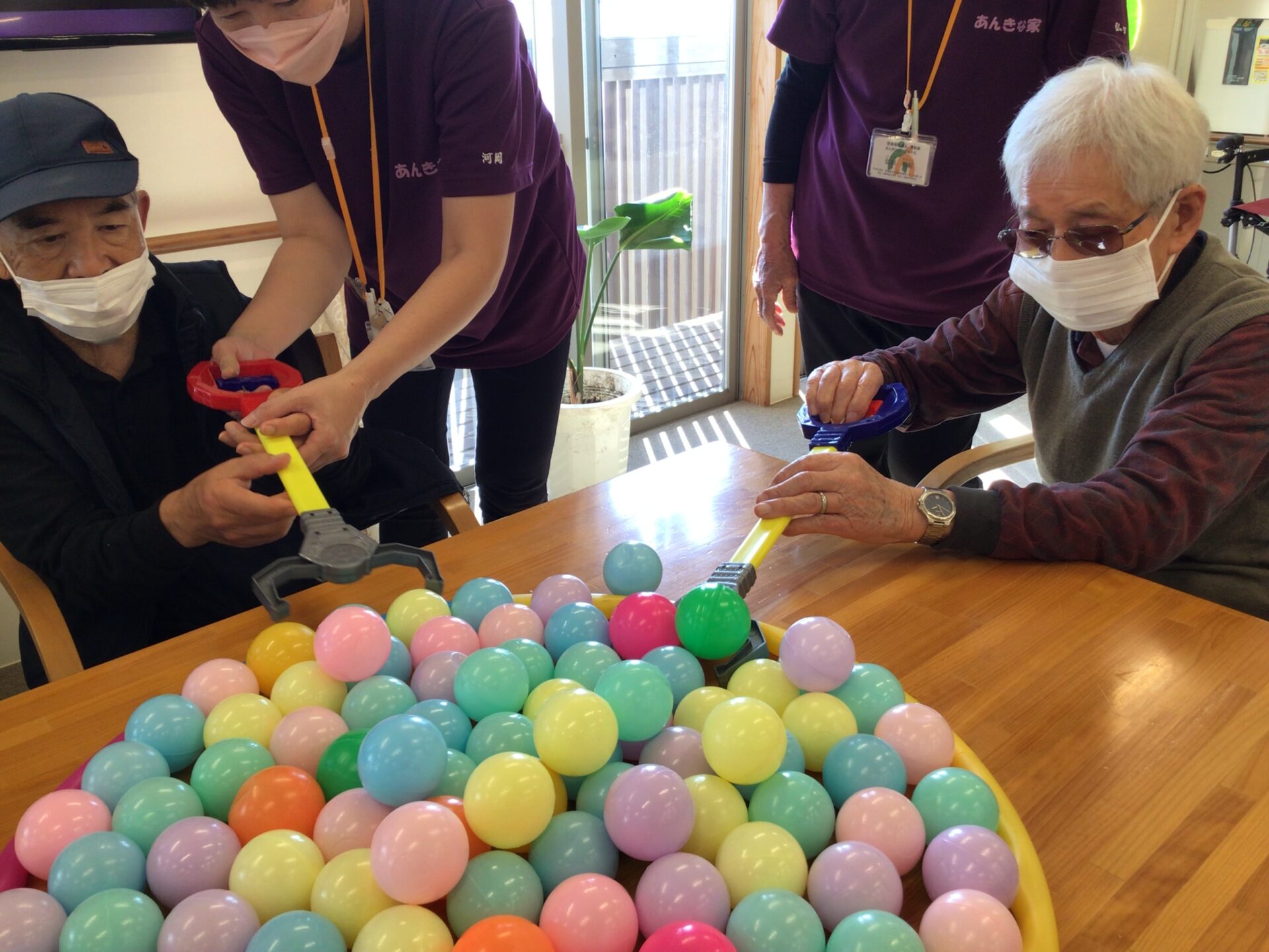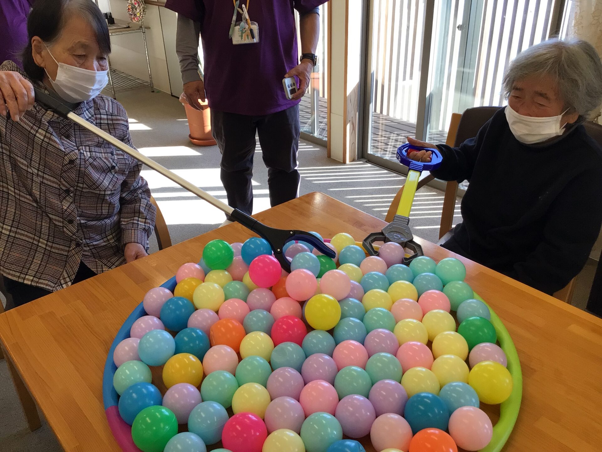 マジックハンドは力加減が難しかった様でポロポロとカラーボールが逃げていきます(笑)( *´艸`)