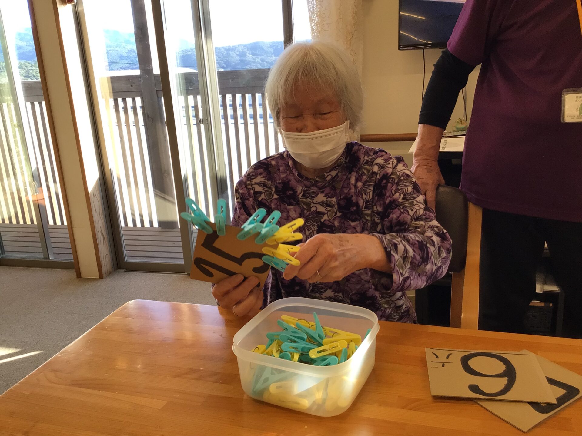 書かれた数だけ洗濯バサミをつけていきます☆