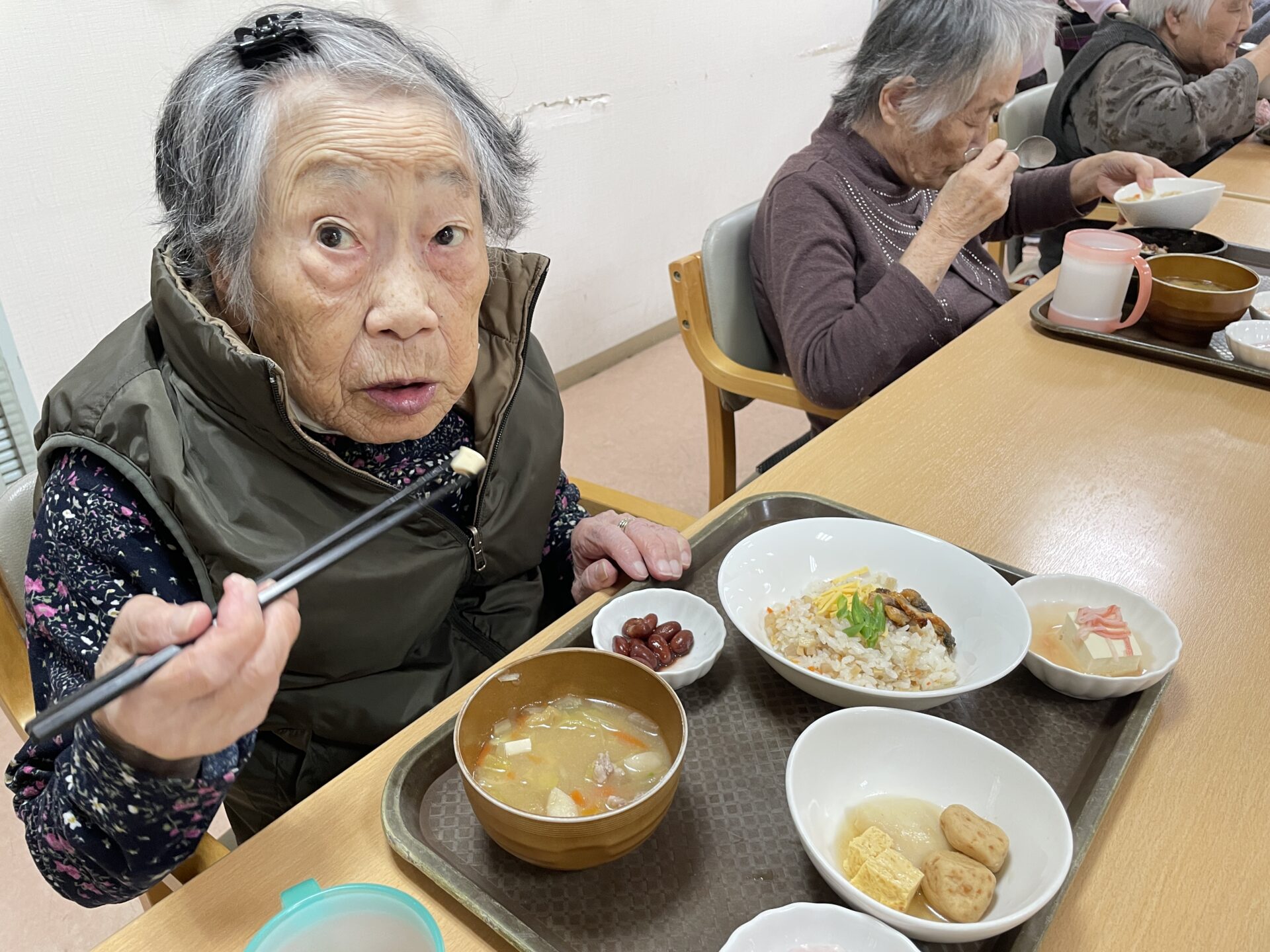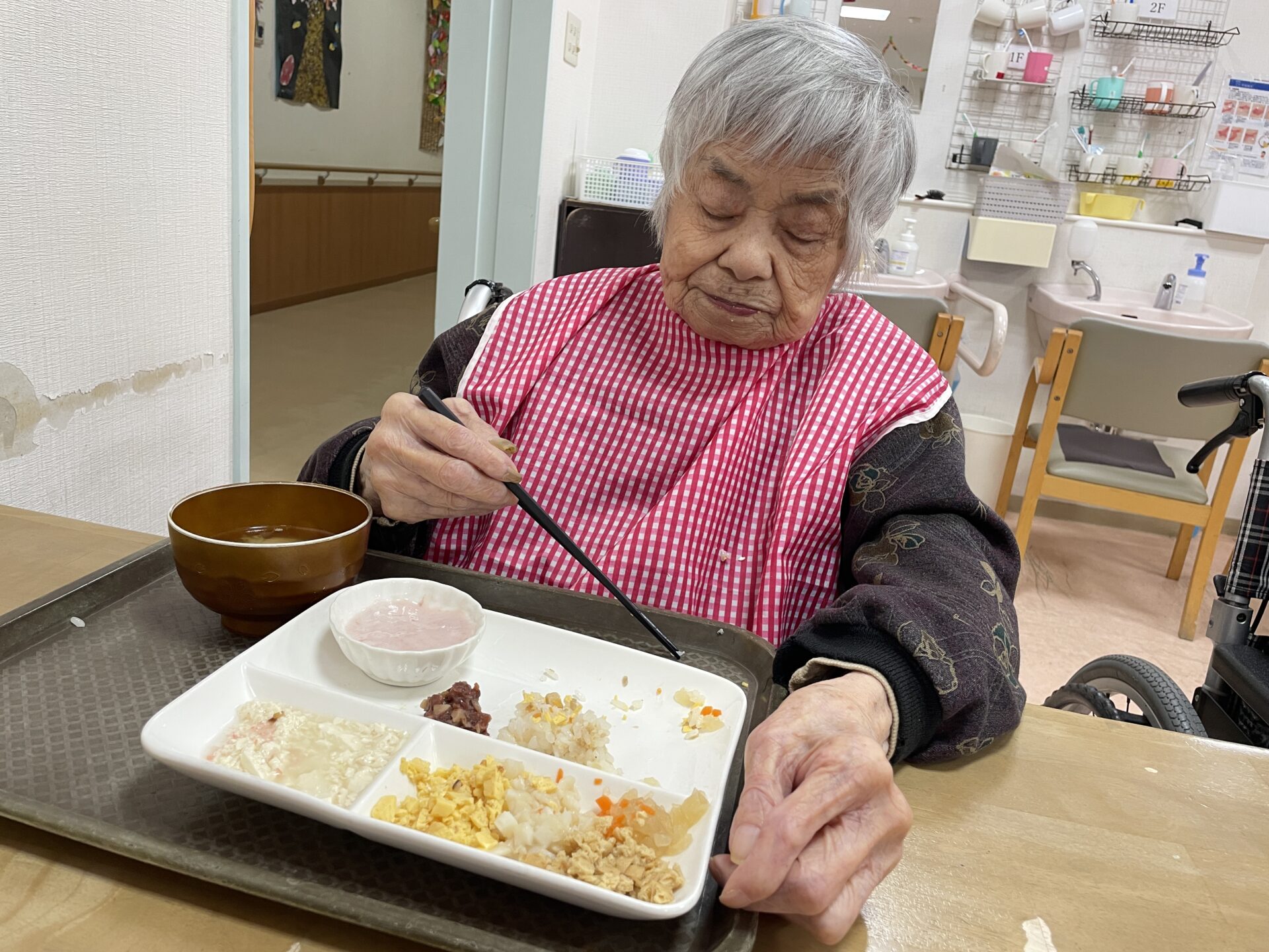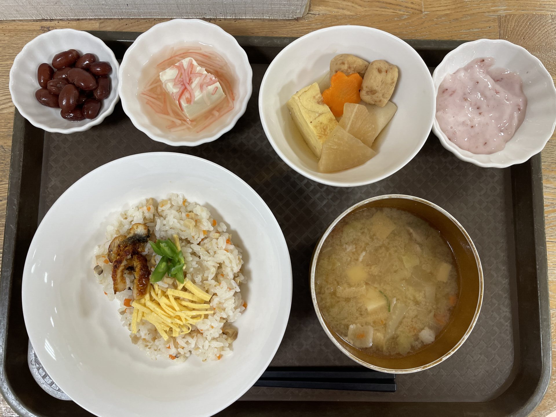 ケアハウス🍳お楽しみランチ🥢 みなさん、こんにちは(‘ω’)✨ 今日のケアハウスの昼食はお楽しみランチ🍳😊♩ ・うなぎのちらし寿司・豚汁・おでん・煮豆 ・豆腐のカニカマあんかけ・フルーチェ でした(^v^)♪ 『ちらし寿司に鰻が乗っちょう♪』『おいしい~うれしい~♩』 ペロッとみなさん食べられました(^v^)♪ 月に1度のお楽しみランチ😊また来月お楽しみに~~♩