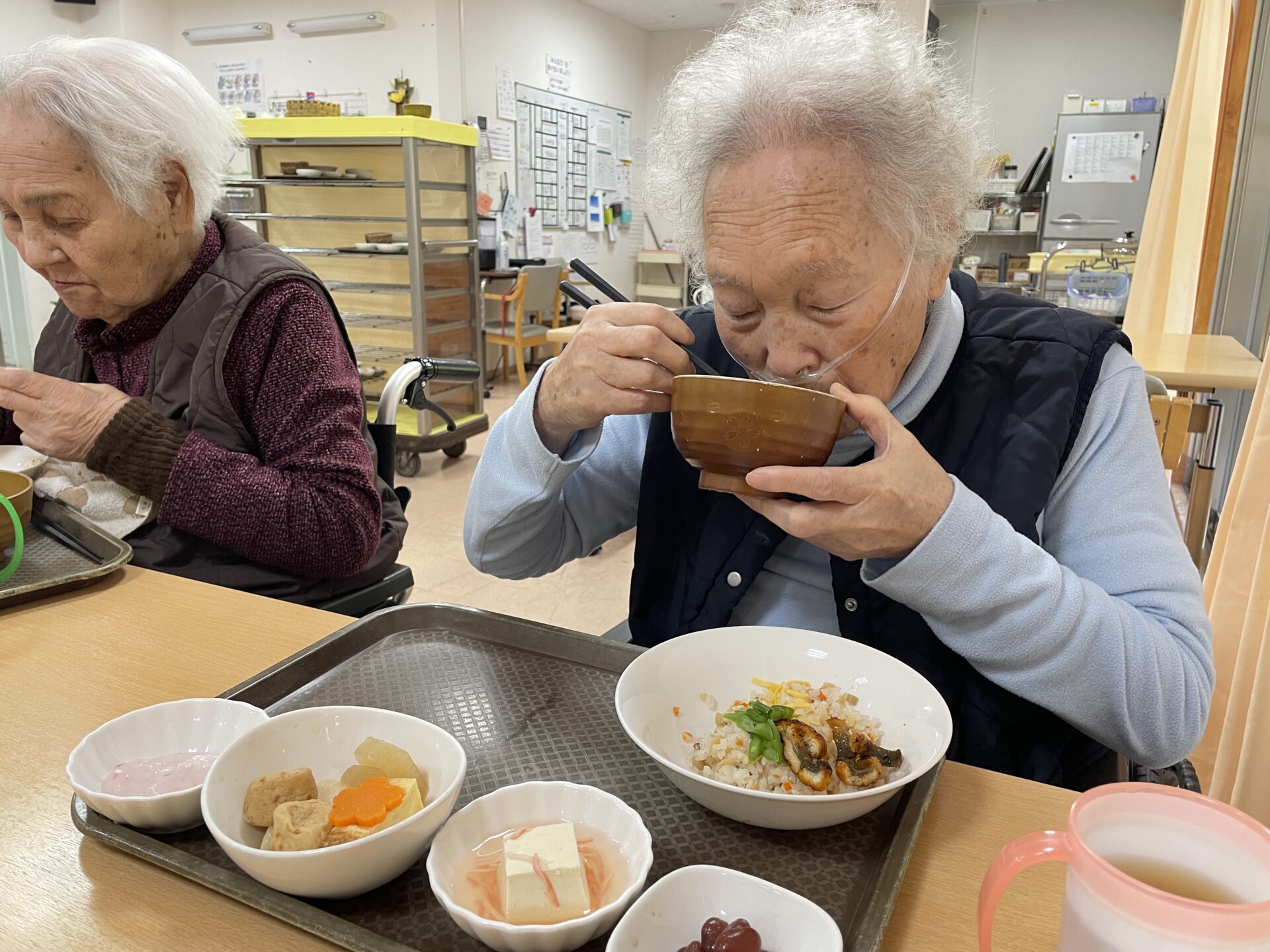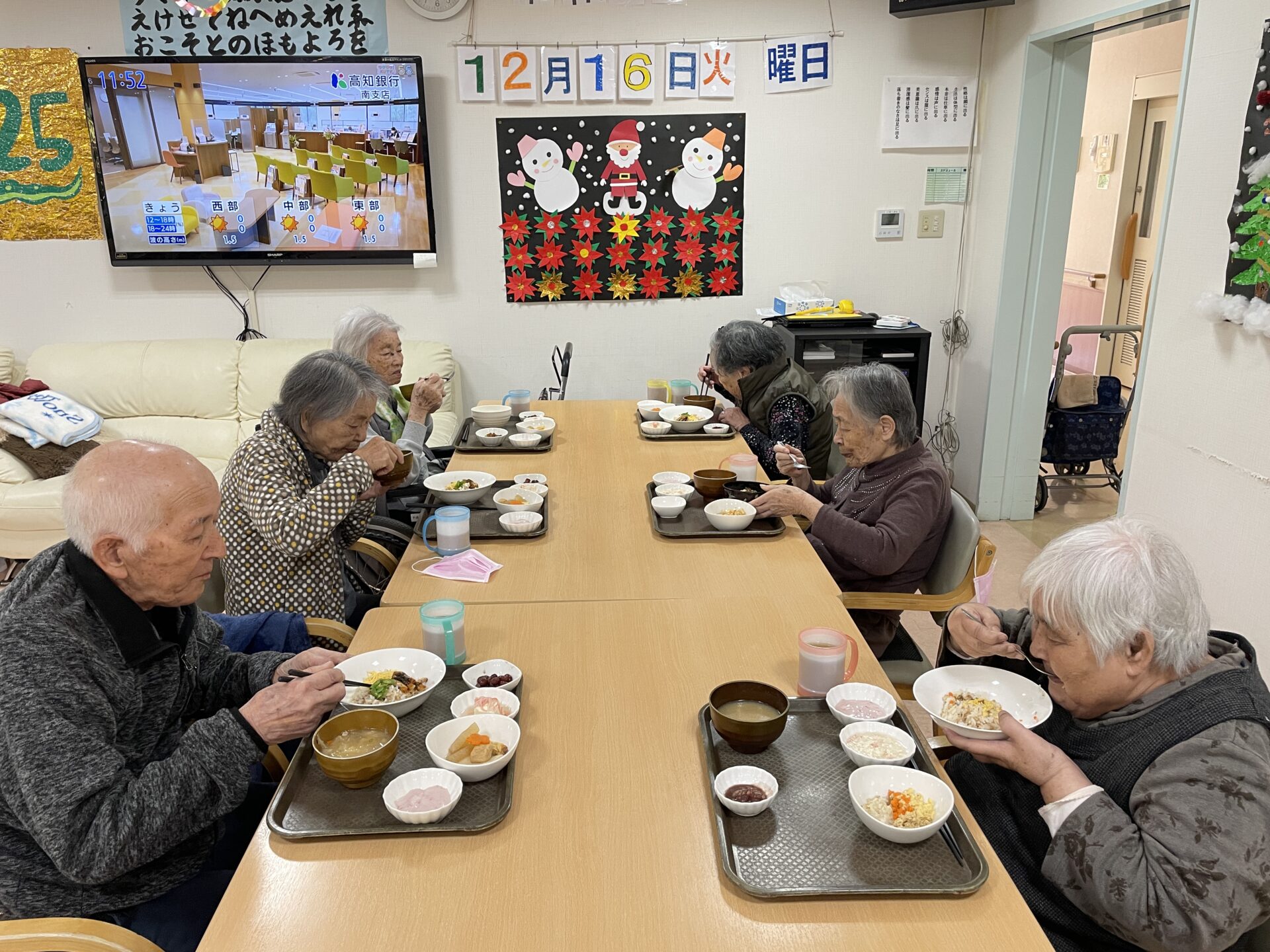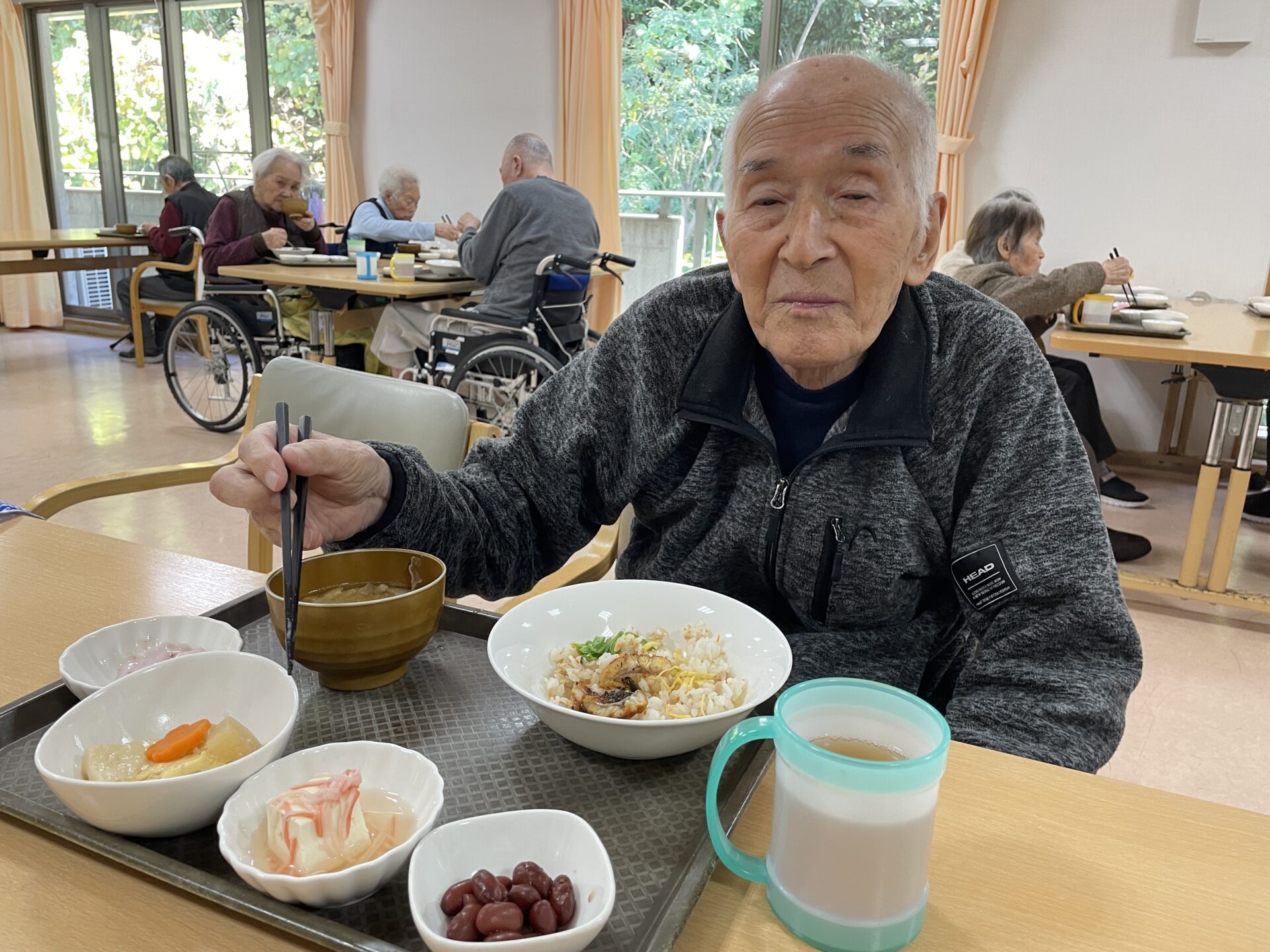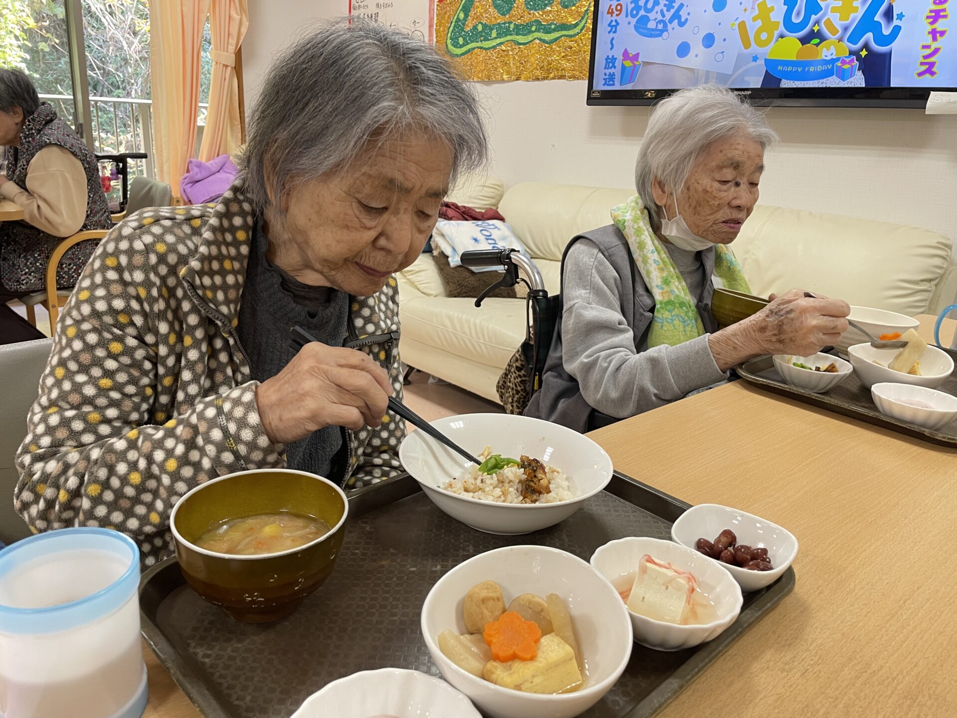 ケアハウス🍳お楽しみランチ🥢 みなさん、こんにちは(‘ω’)✨ 今日のケアハウスの昼食はお楽しみランチ🍳😊♩ ・うなぎのちらし寿司・豚汁・おでん・煮豆 ・豆腐のカニカマあんかけ・フルーチェ でした(^v^)♪ 『ちらし寿司に鰻が乗っちょう♪』『おいしい~うれしい~♩』 ペロッとみなさん食べられました(^v^)♪ 月に1度のお楽しみランチ😊また来月お楽しみに~~♩