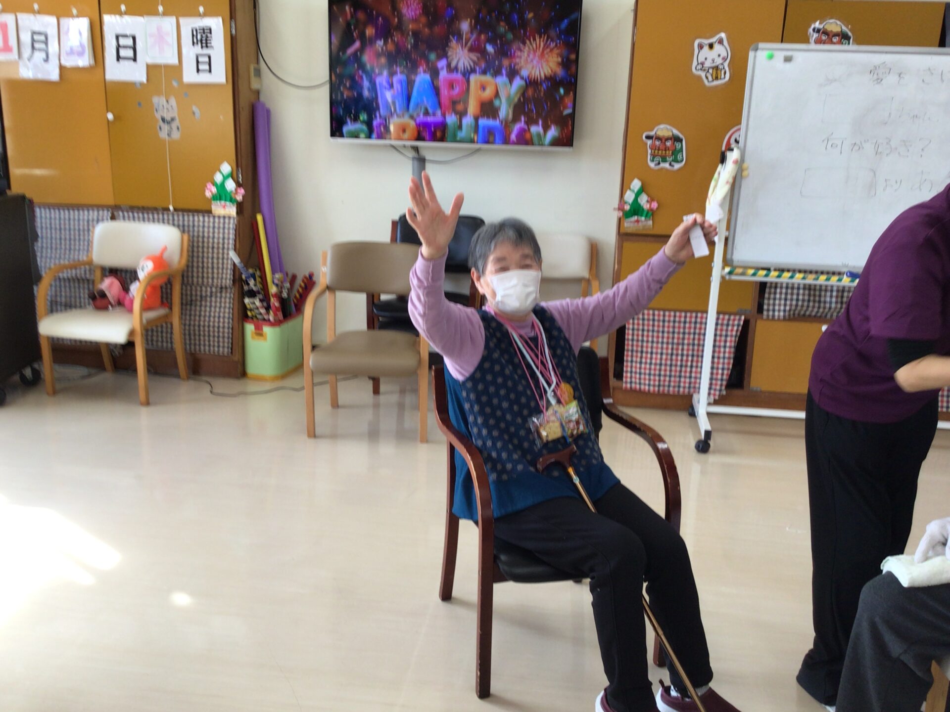 新年会&誕生日会☆デイGH合同 今月は男性3名のお誕生日🎂おめでとうございます👏 新年会まずは今流行のアイスクリームチャレンジ 何が好き~💕と言う事で 皆様にかわいく愛を叫んで頂きました 今年の運だめし!お菓子をかけての 大じゃんけん大会!! 初代チャンピョン!!( ´∀` ) 勝利の微笑み 最後はカラオケ大会♪ 楽しい一日でした おやつはぜんざいでした