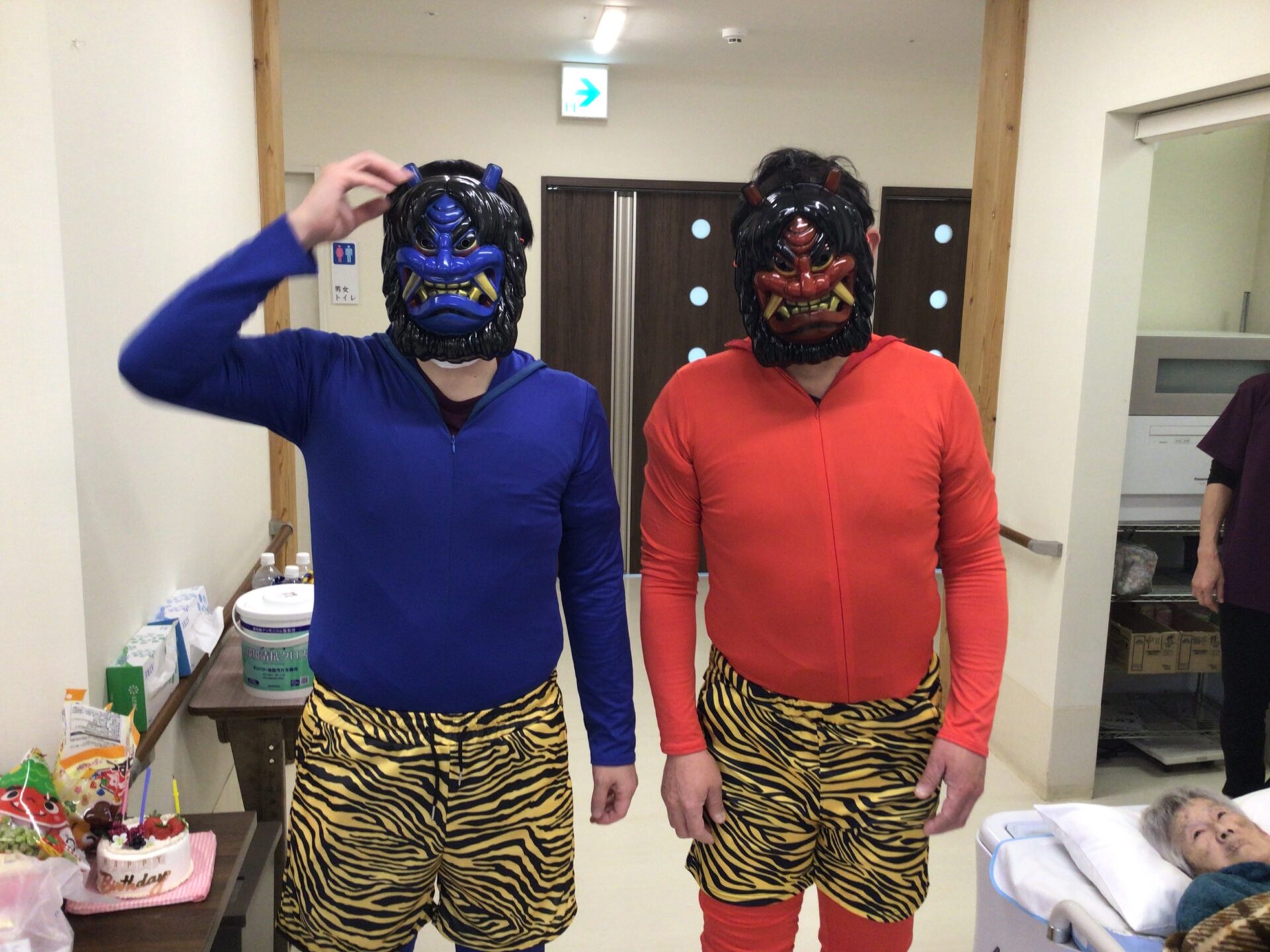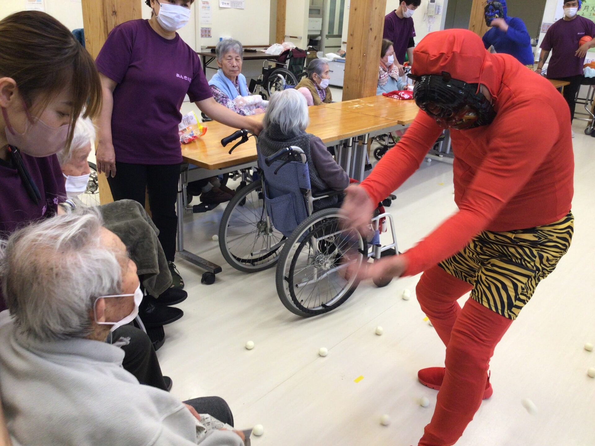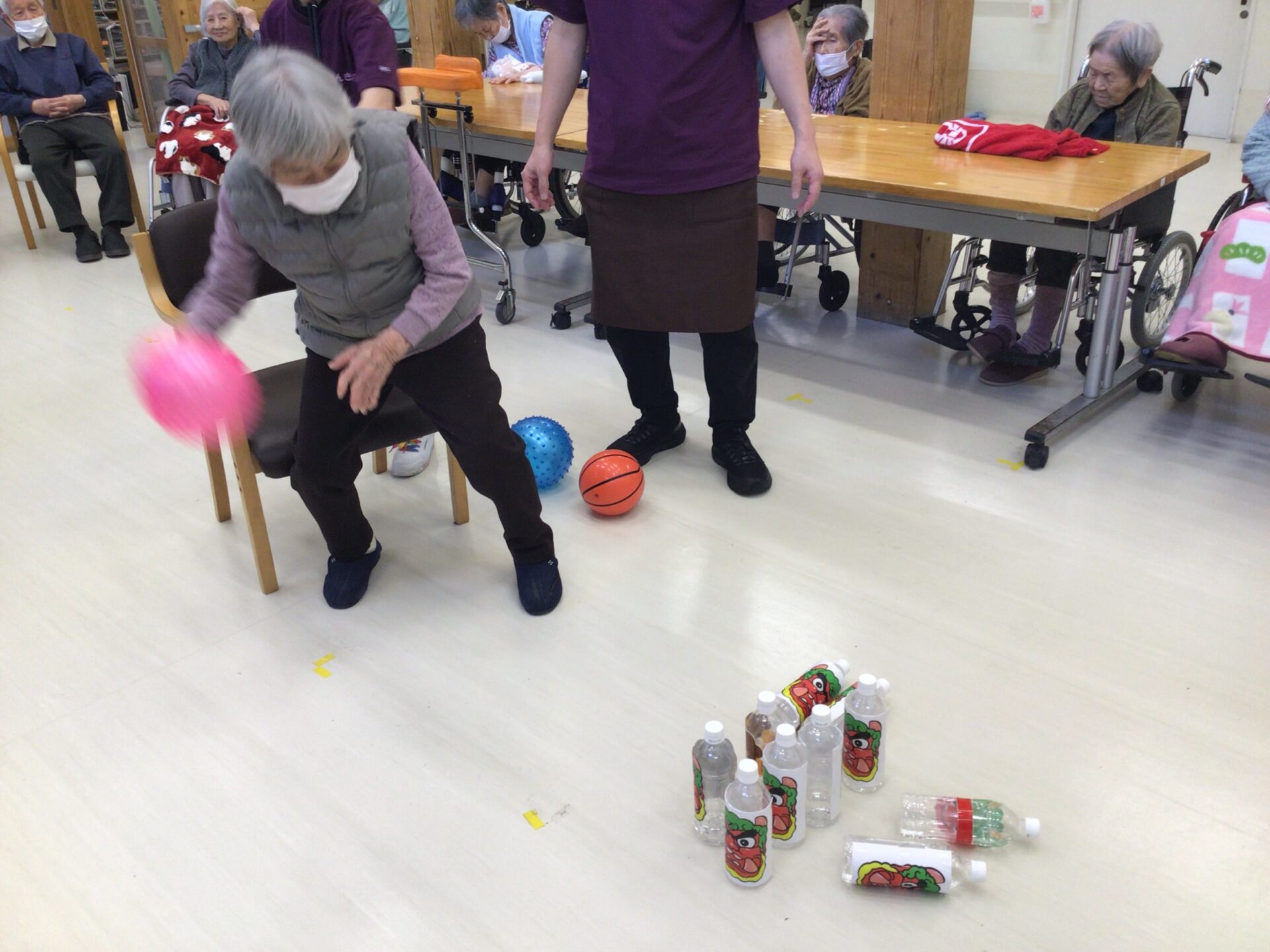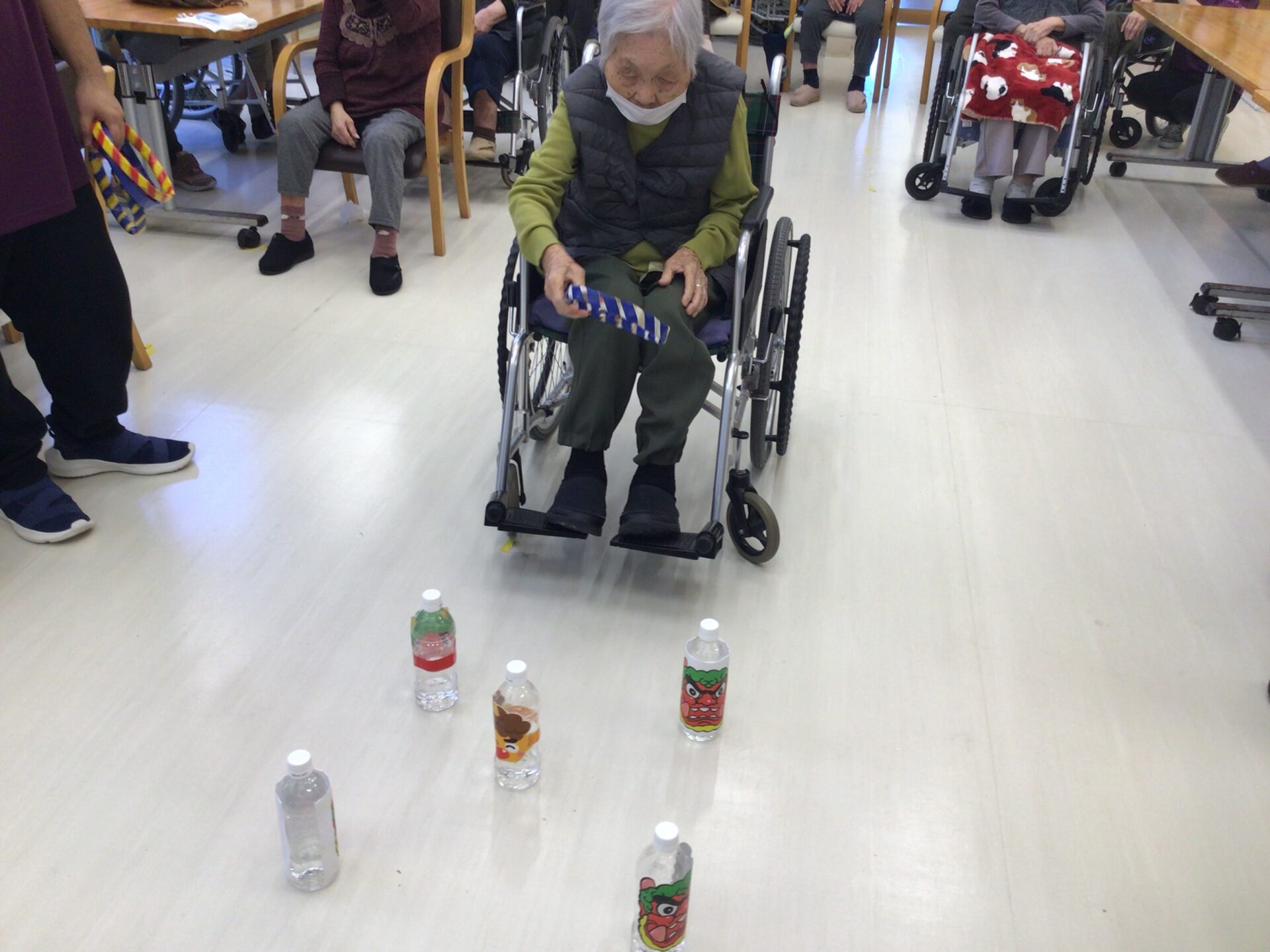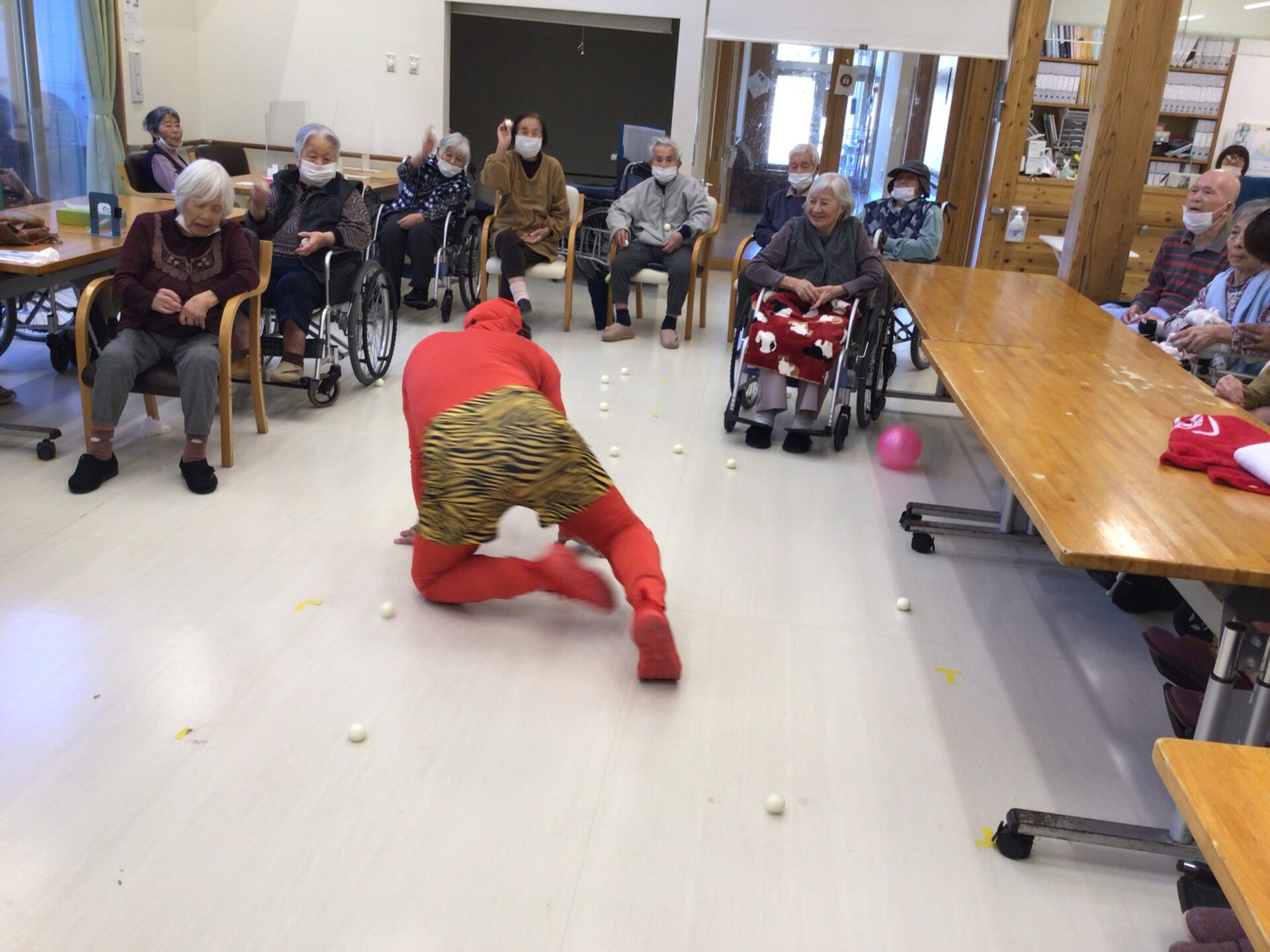 豆の代わりにボールを投げて鬼を退治しました(笑)