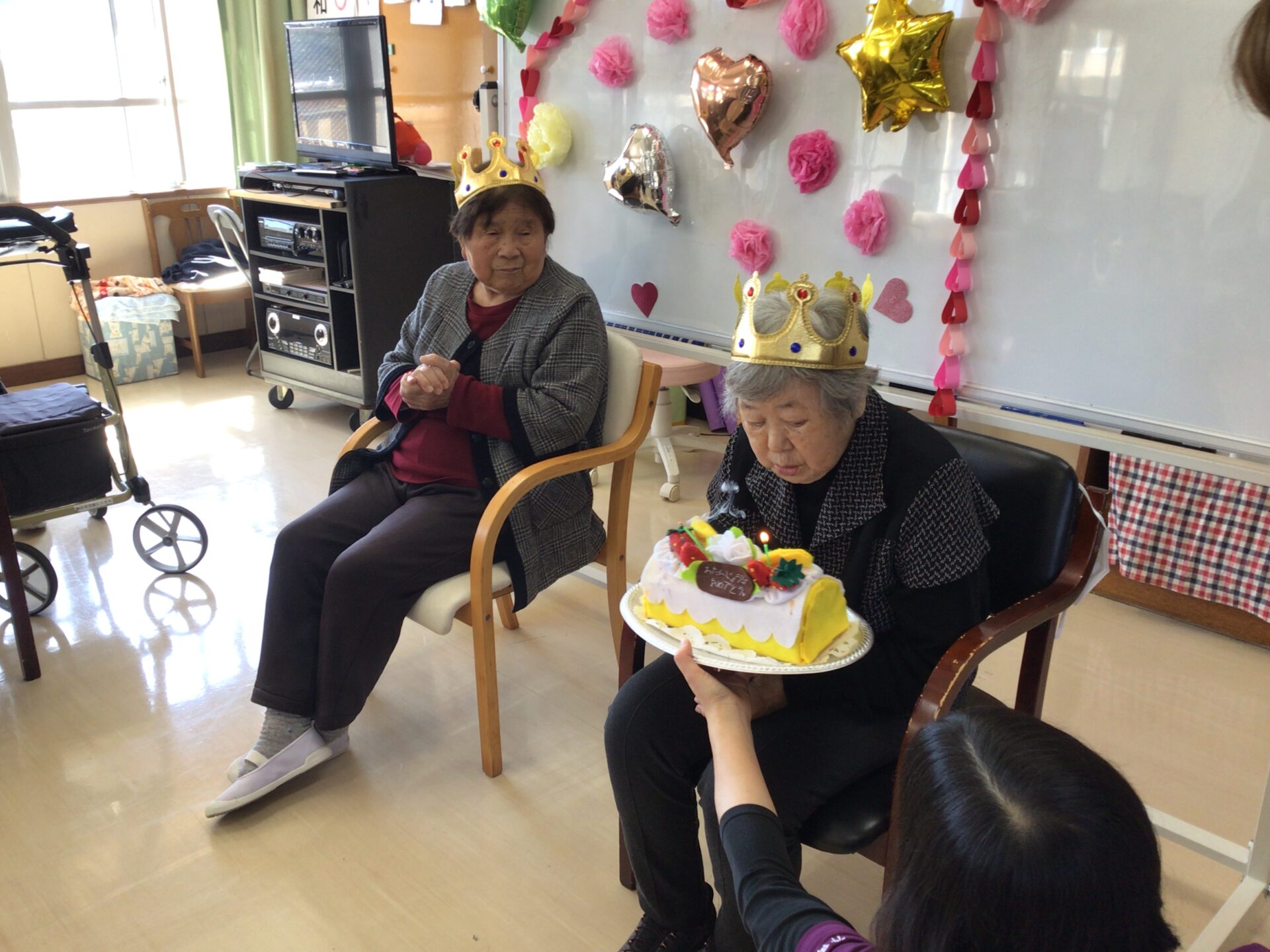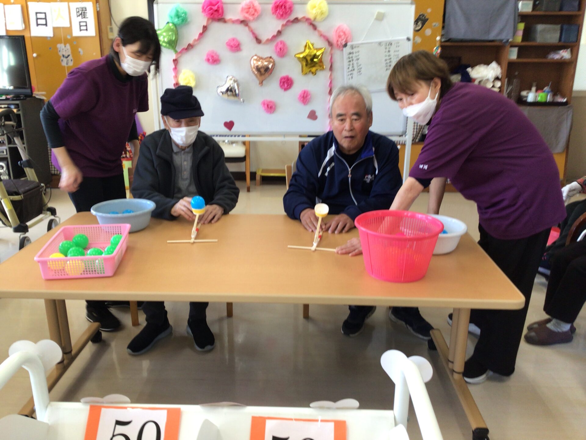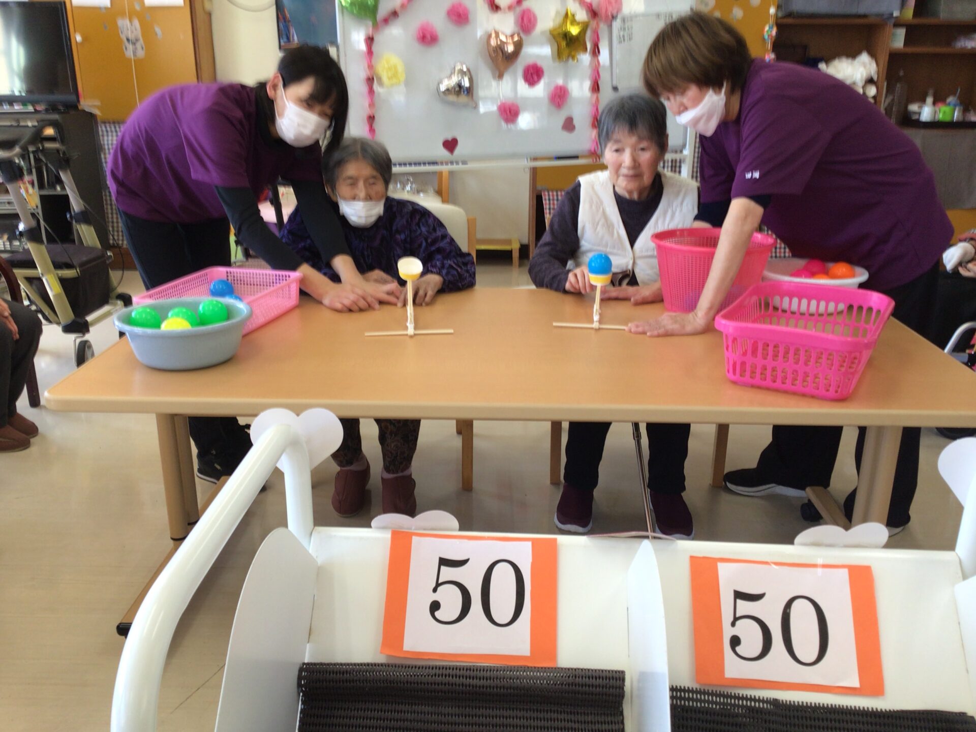 バレンタイン&誕生会★デイGH合同 皆様、こんにちは! 今日はデイとGH合同のバレンタイン&誕生会を開催しました。 今月の誕生者は2名でした。誕生日おめでとうございます💕 次にカラーボール飛ばしゲームをしました。 皆にチョコをプレゼントしました。 おやつにはチョコケーキ♬ 来月はひな祭りイベントを行います。