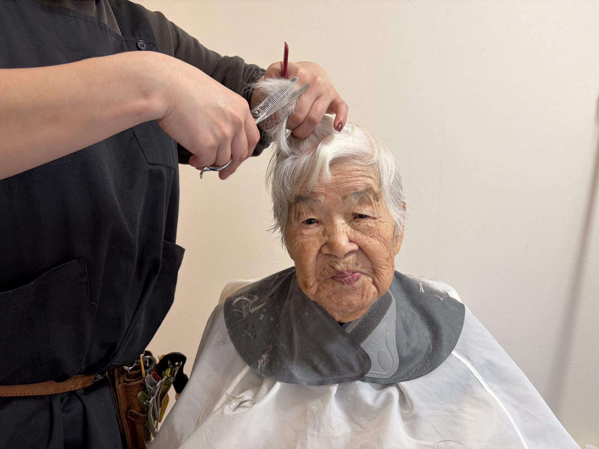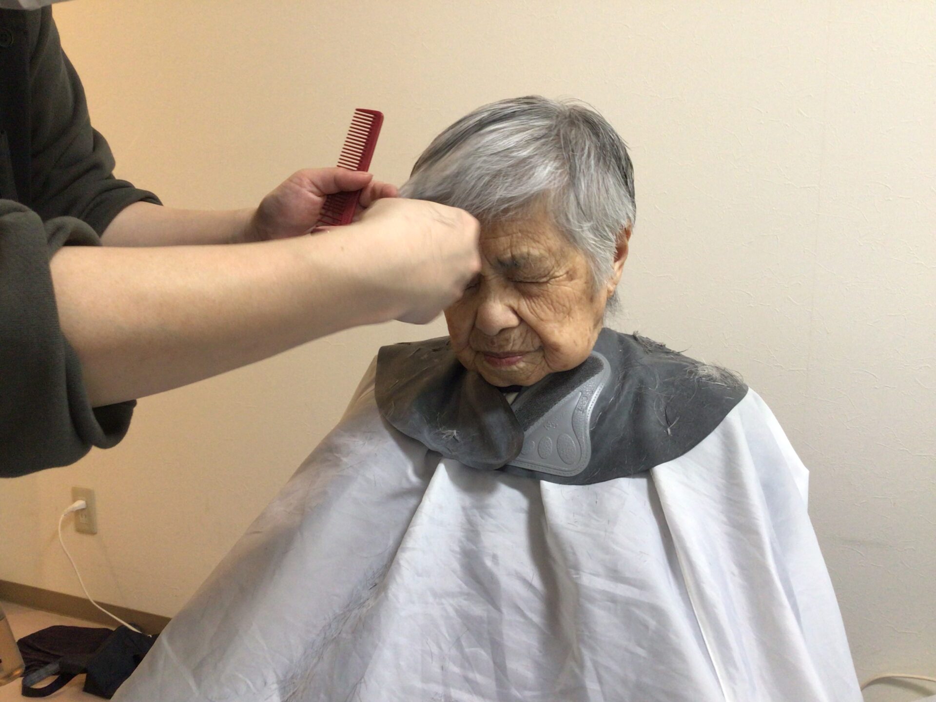 ケアハウス✂散髪✨ みなさん、こんにちは(‘ω’)✨ 今日のケアハウスは・・・理容師の方を呼んで 散髪を行いました(^v^)✂♩ それでは・・・スッキリしたみなさんを・・✨ 『気持ちようなった♩』『頭が軽んなったね~』 『まあ~あんたようなったやいか~』と言い合っていました♩ 今日の天気も、とても温かくて気持ちよかったです🌟 玄関先で日向ぼっこもしてみました(^v^)☀