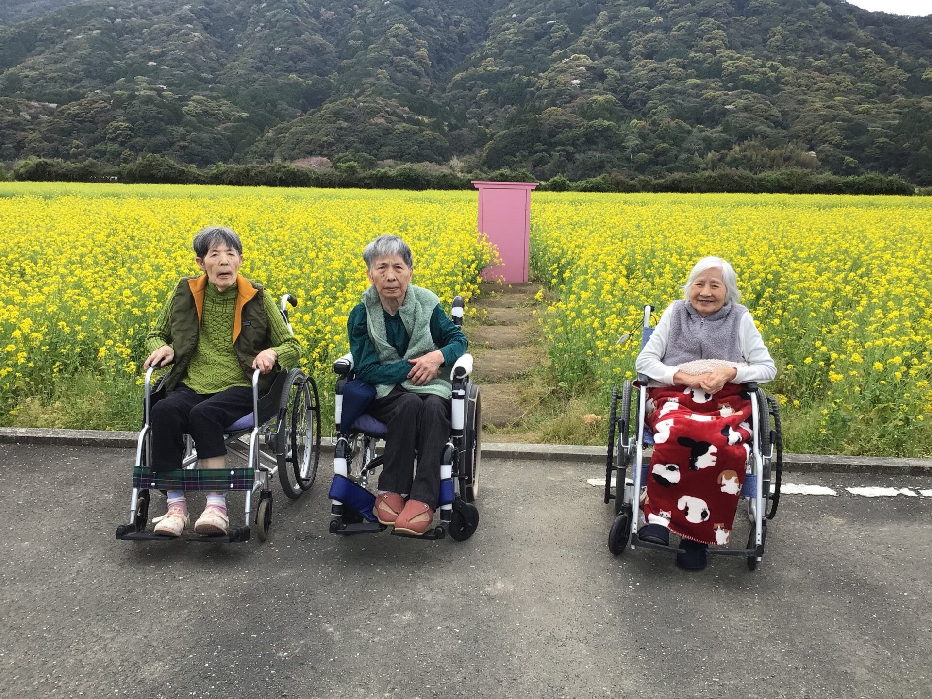 特養ドライブ花見 今日は菜の花と桜を見に行ってきました! 大岐の菜の花がビタミンカラーでとても綺麗でした! 桜の花は昨日の嵐で少し葉桜になっていたりもありましたが 綺麗な桜に皆でうっとりしたことでした🌸 また見に行きたいですね~♪