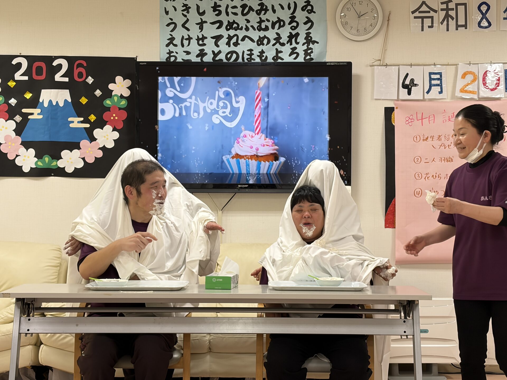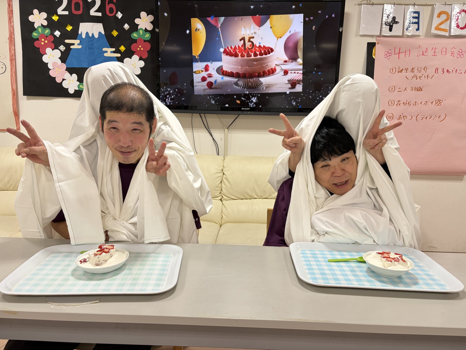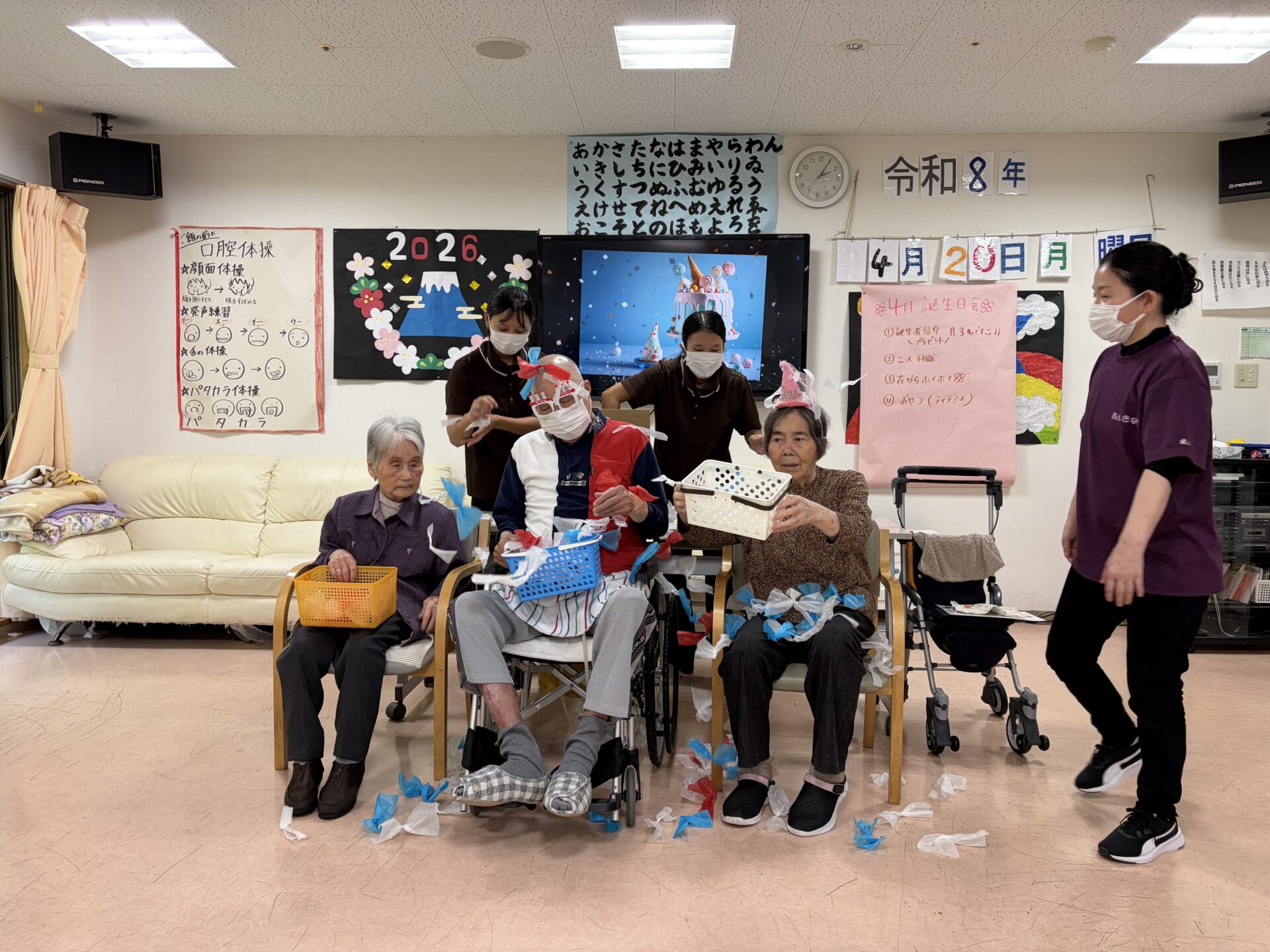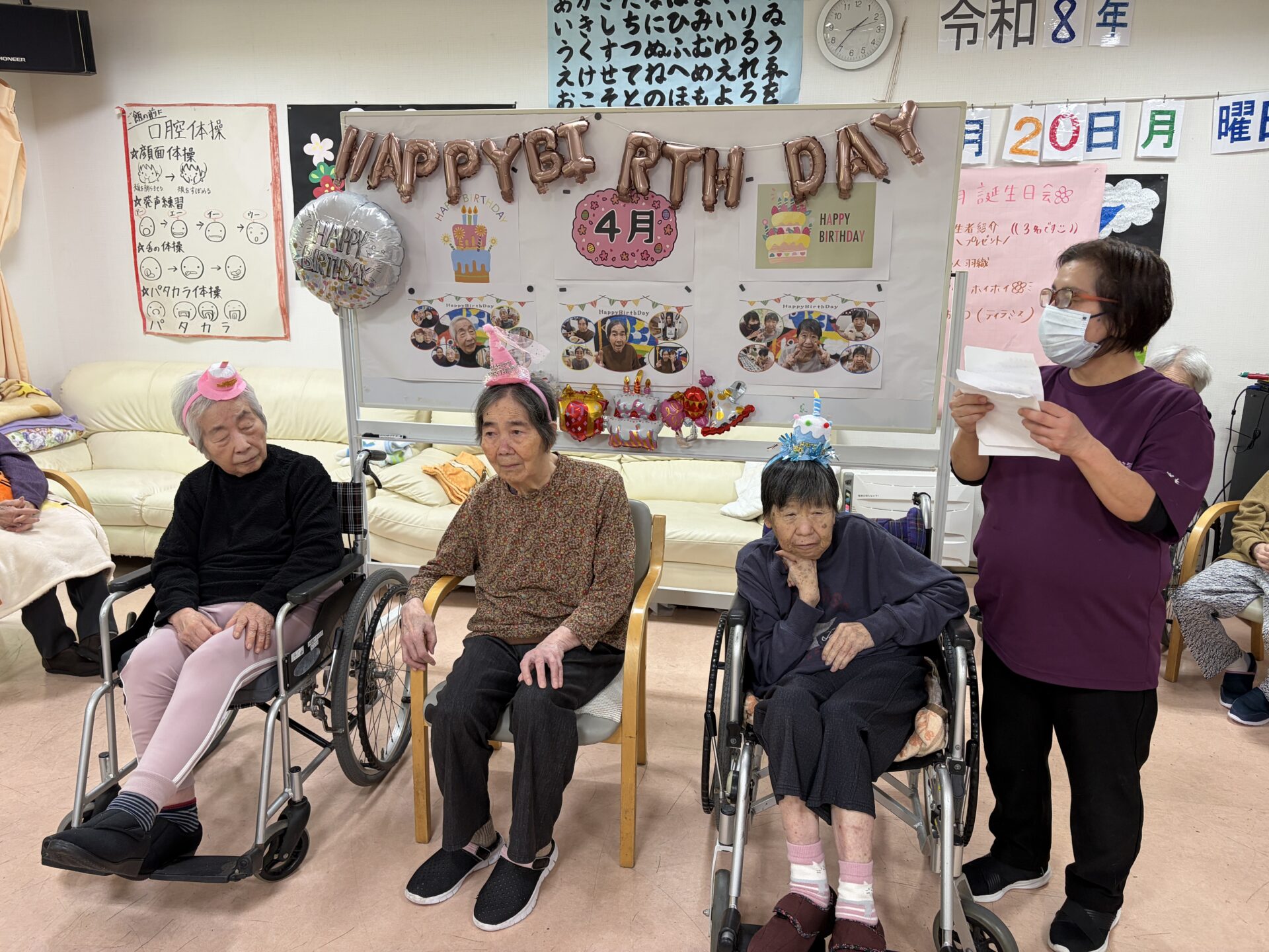 今日のケアハウスは、午後から4月の誕生日会を行いました♩