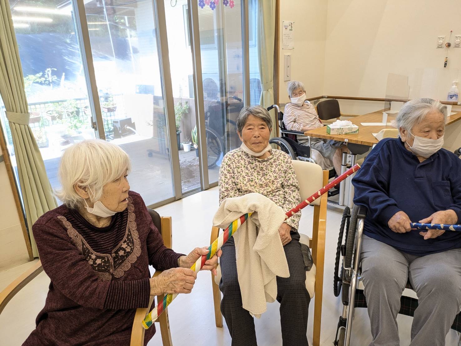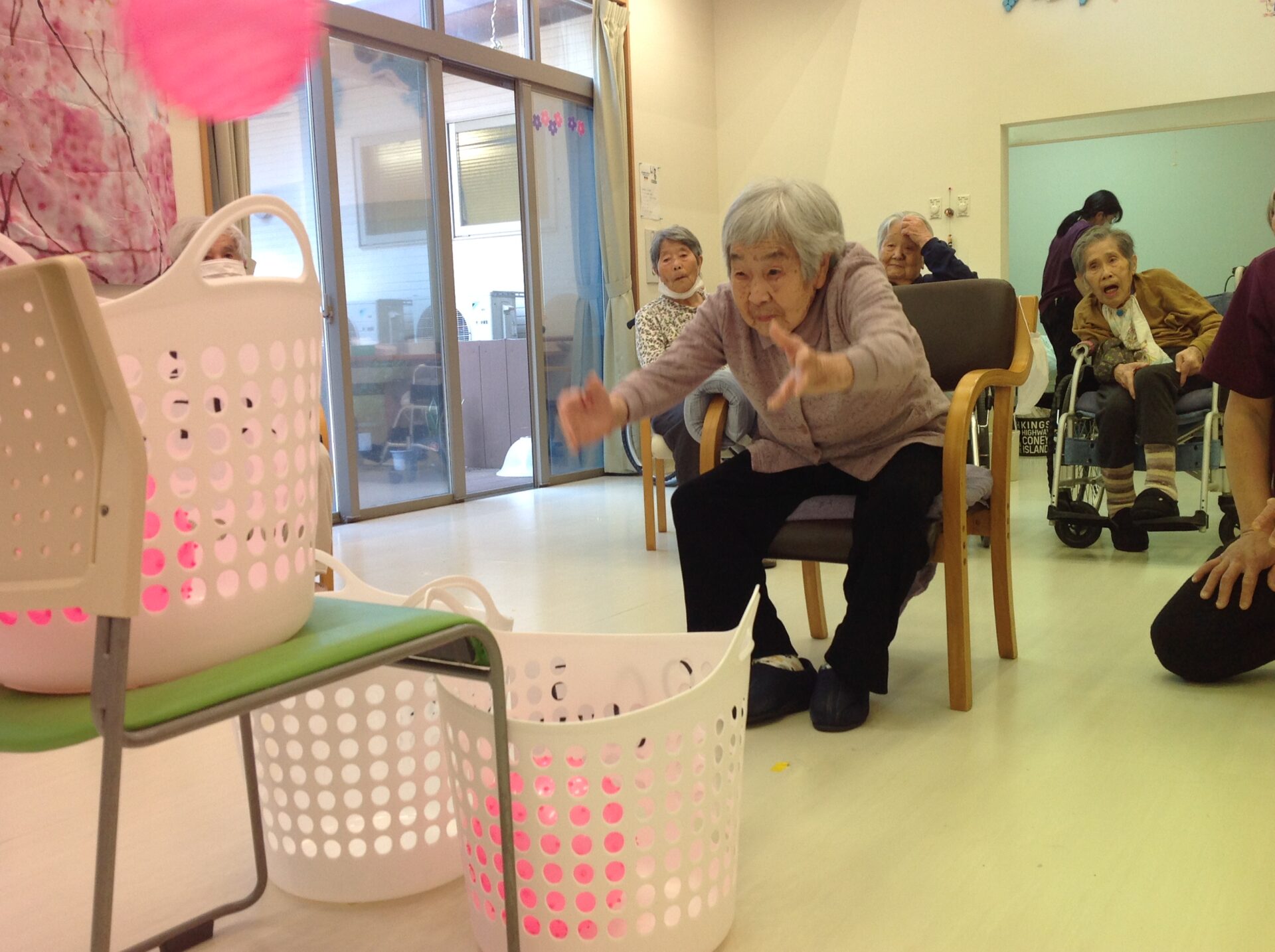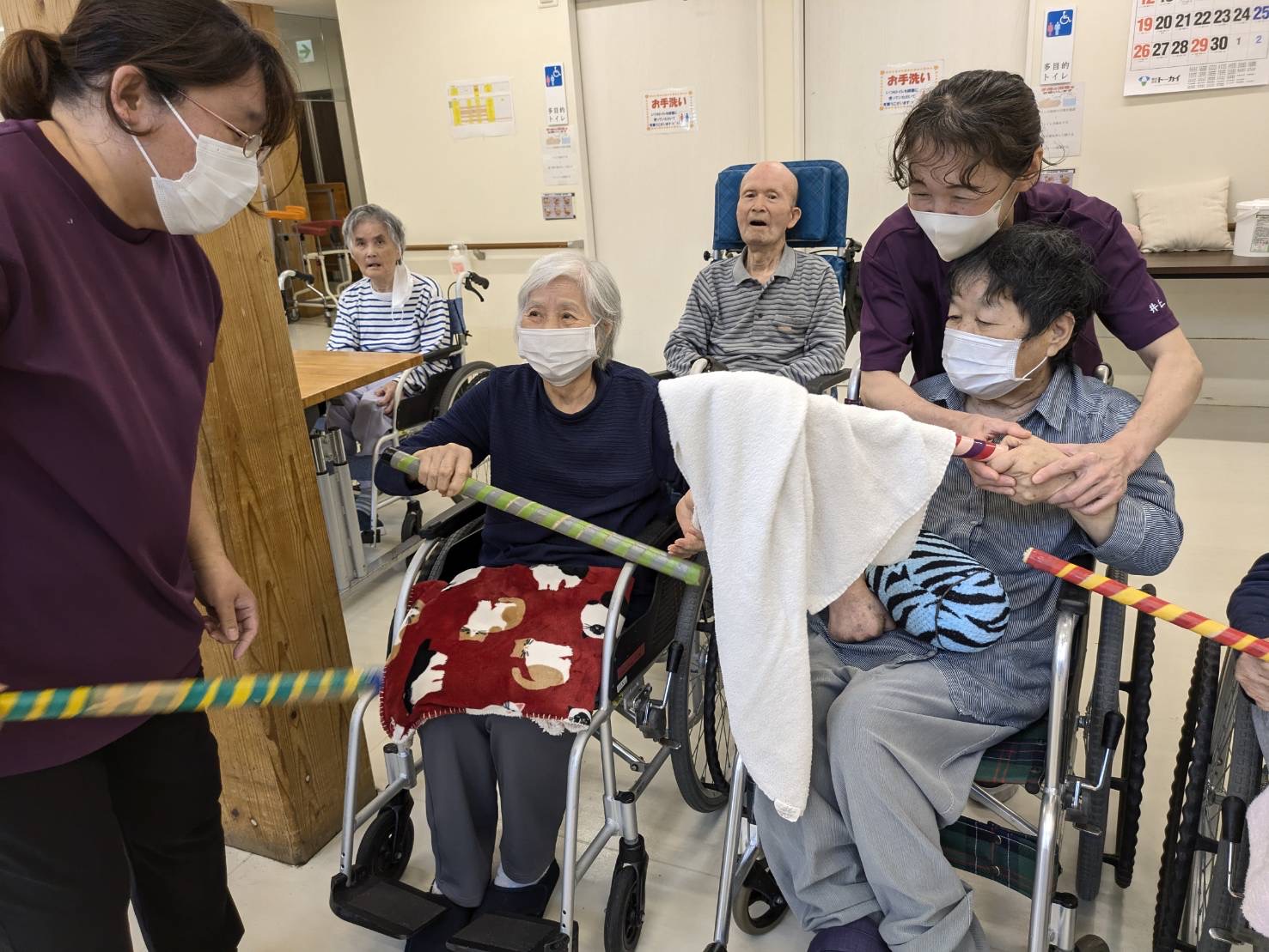 ❁特養❁「4月誕生日会」 皆様!こんにちは\(^o^)/ 本日、特養では4月の誕生日会を行いました❁ 4月のお誕生者様は2名です! お誕生日おめでとうございます❤ お誕生者様の紹介のあとは 「ボール投げ」と「タオル渡し競争」を 楽しみました\(^o^)/ 皆様楽しそうに笑顔も見せてくれました\(^o^)/ レクリエーションのあとは参加賞でお菓子をもらいましたよ♪ 来月もお楽しみに☆
