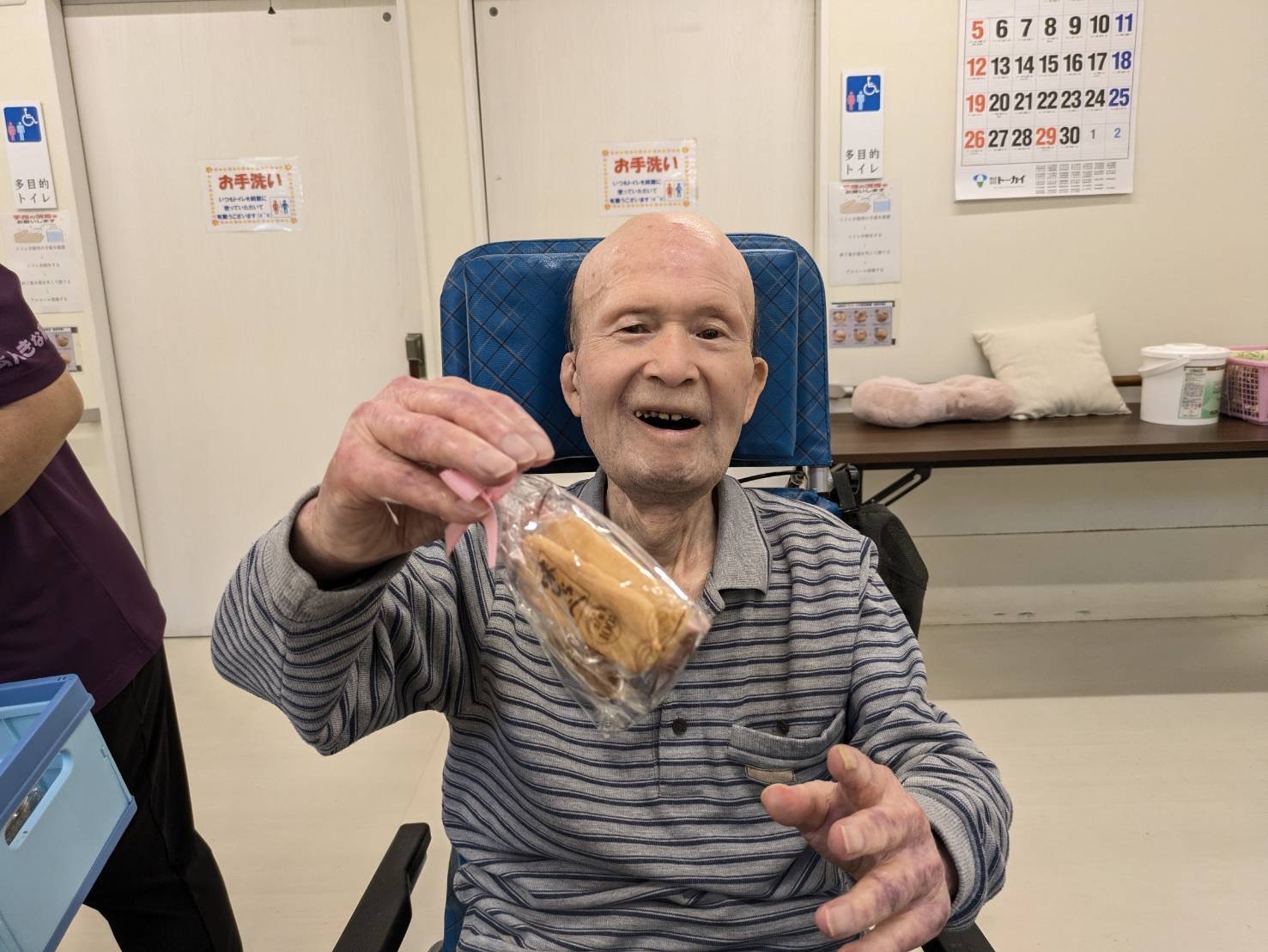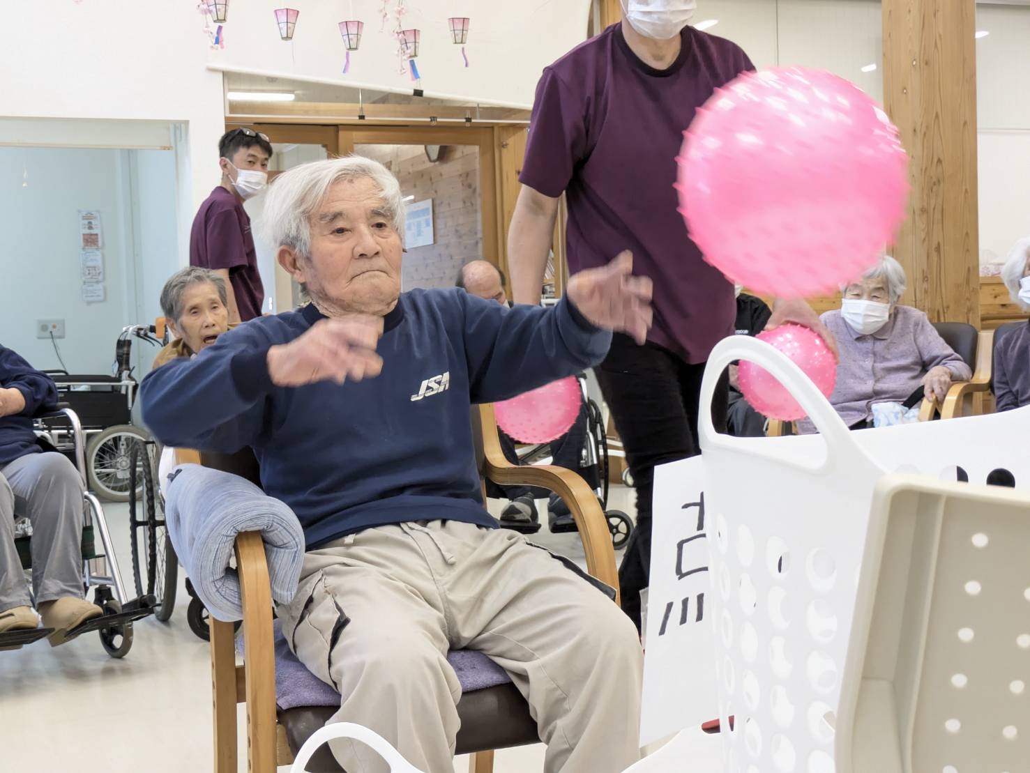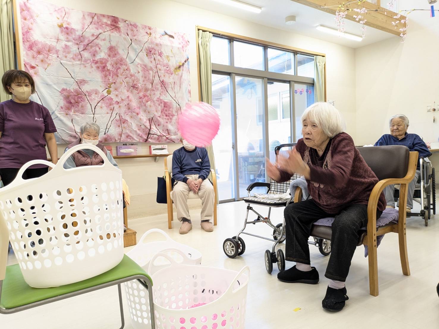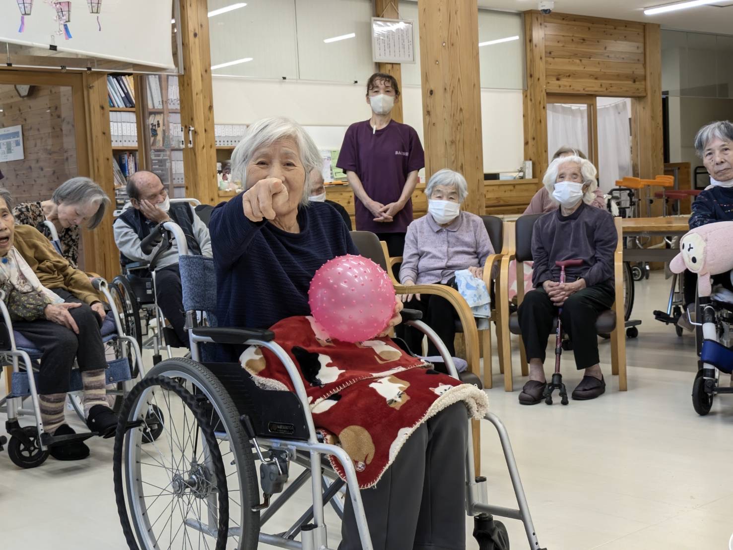 ❁特養❁「4月誕生日会」 皆様!こんにちは\(^o^)/ 本日、特養では4月の誕生日会を行いました❁ 4月のお誕生者様は2名です! お誕生日おめでとうございます❤ お誕生者様の紹介のあとは 「ボール投げ」と「タオル渡し競争」を 楽しみました\(^o^)/ 皆様楽しそうに笑顔も見せてくれました\(^o^)/ レクリエーションのあとは参加賞でお菓子をもらいましたよ♪ 来月もお楽しみに☆