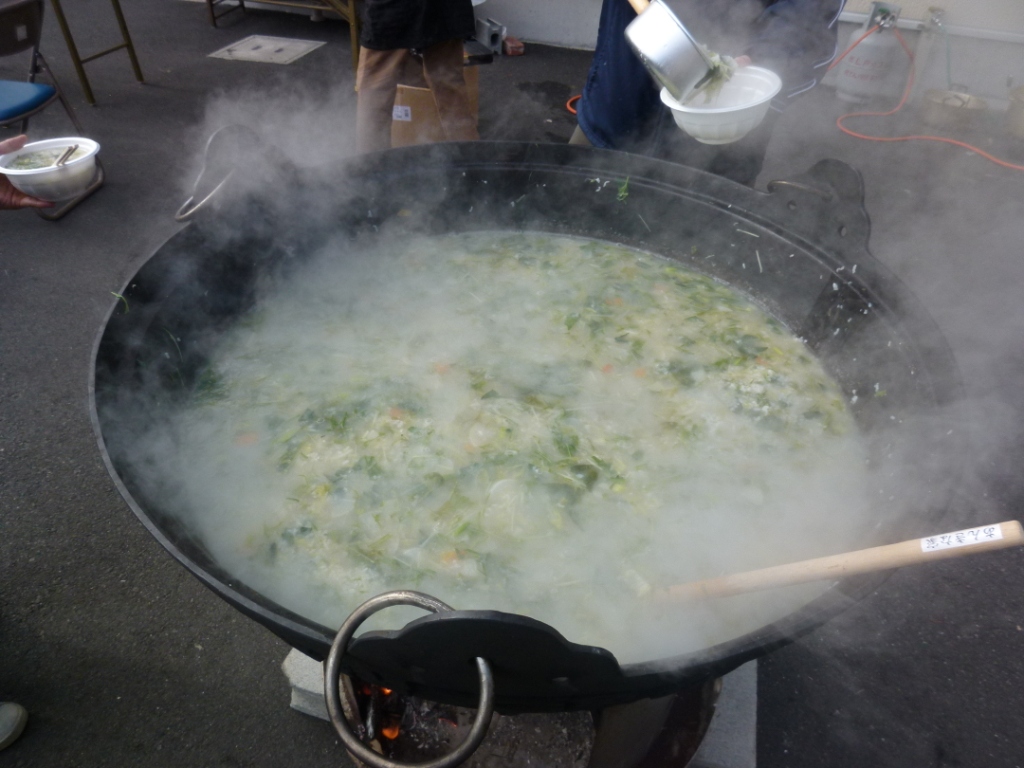本日は、毎年恒例の大鍋の七草粥~~( ^∀^ )