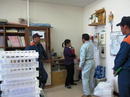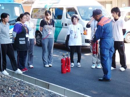 夜間想定の火災消防訓練を行いました。夜間なので少ない職員