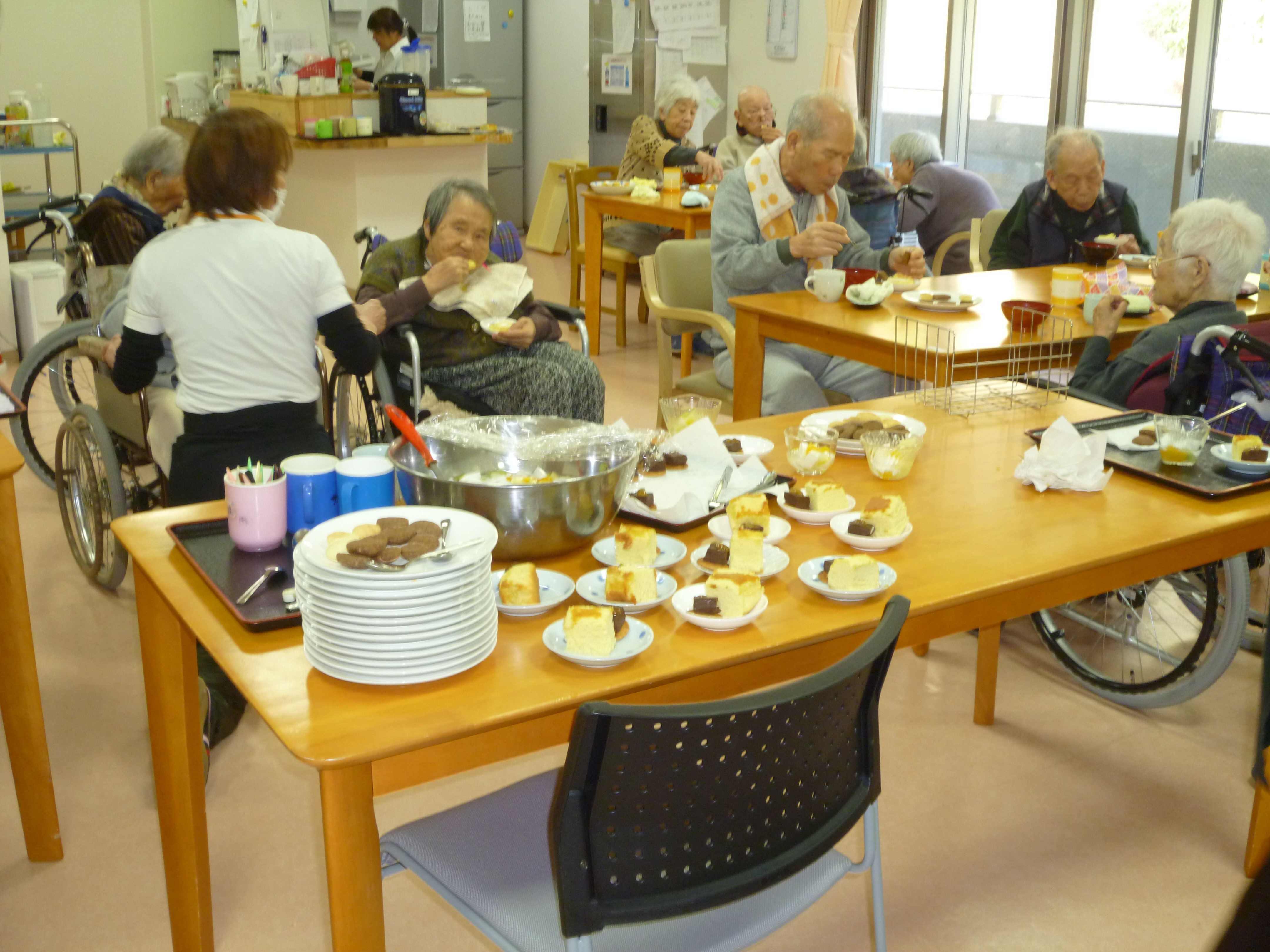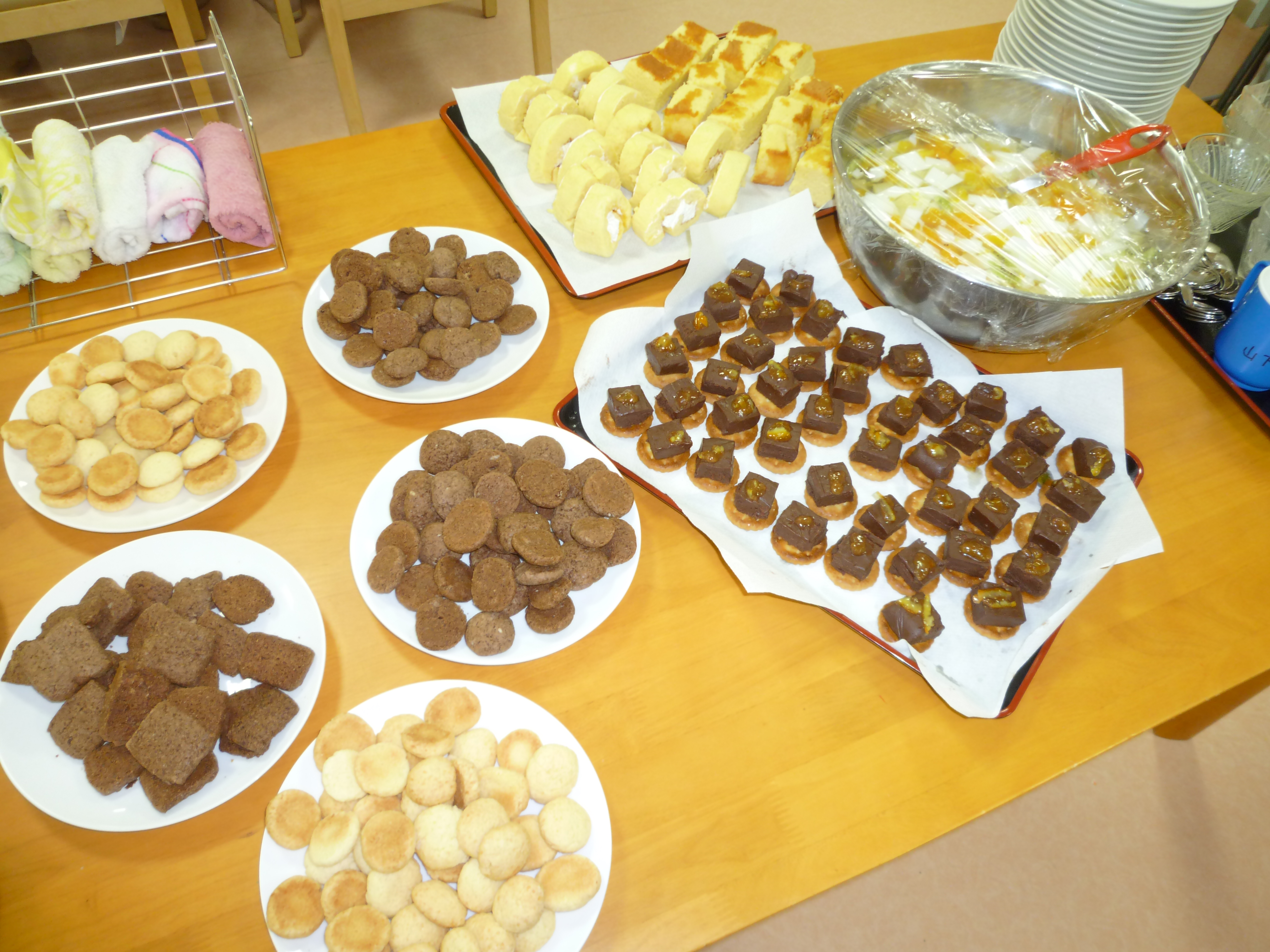 前日より各部署が作った手作りおやつを持ち寄り、バイキング形式であま~~~~~~いスウィーツを楽しみましたょ(^^)v♪。・*
