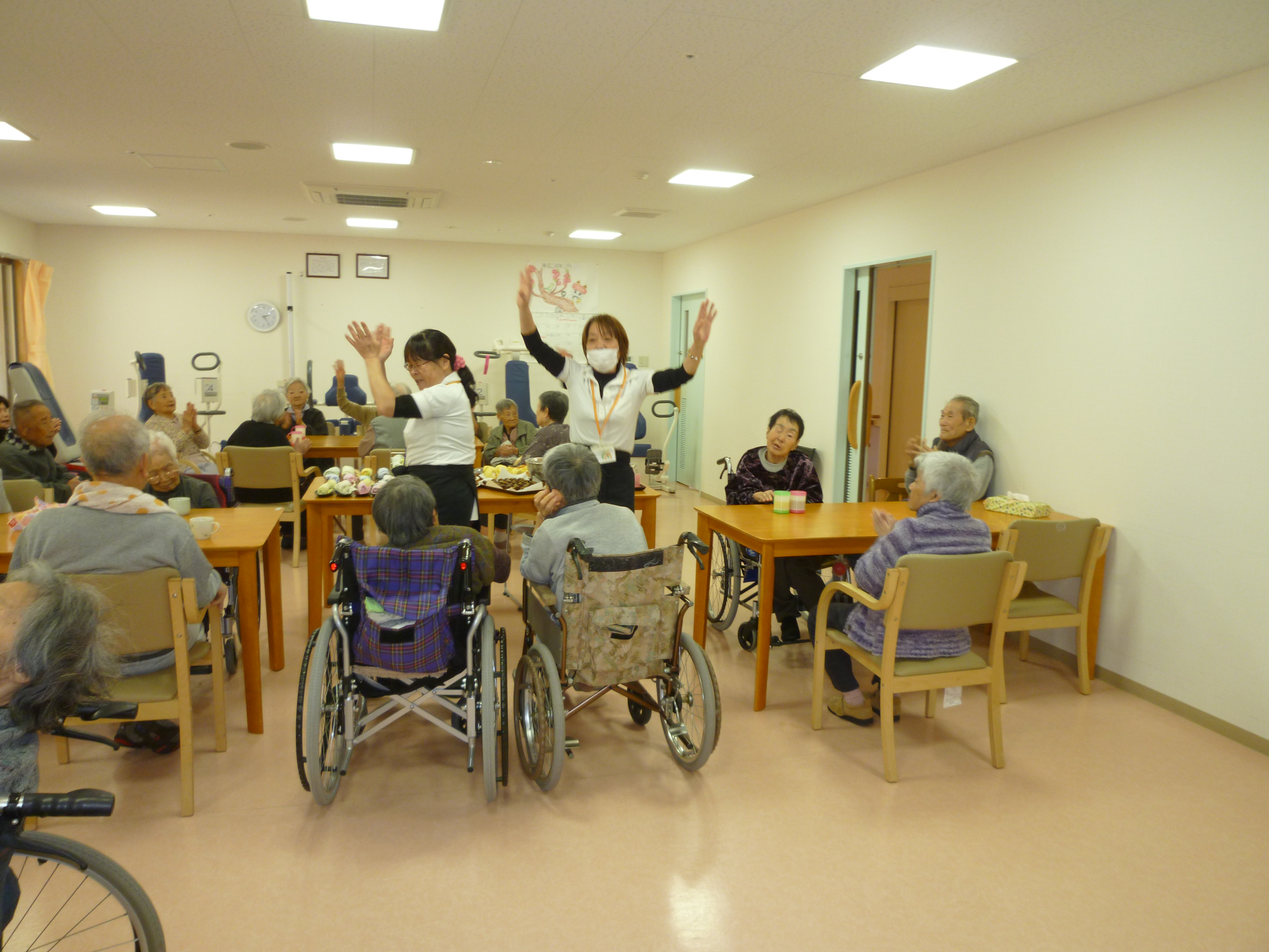 昨日、ケアハウスにグループホームの皆さんが遊びに来て下さり交流会を行いました。