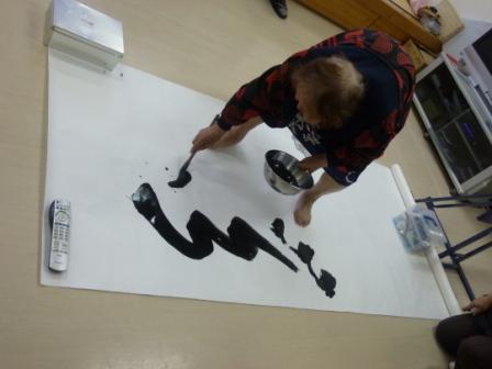 今日はレクリエーションで、横山才子様が習字を披露して下さいました。