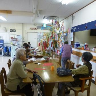 七夕用に作っていました飾り付けや短冊にお願い事を