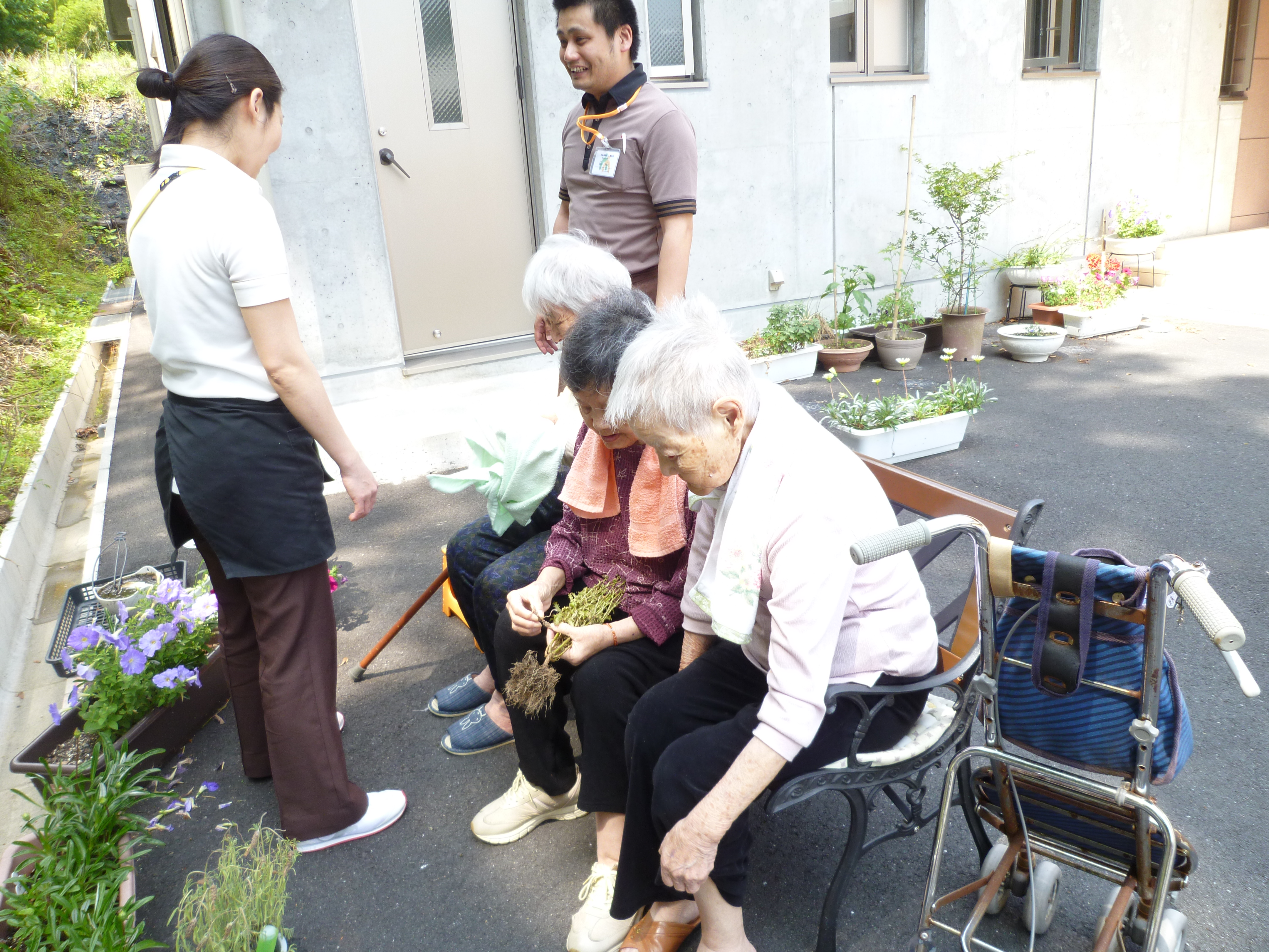 ケアハウスでは天気の良い日にガーデニング教室を行いました。