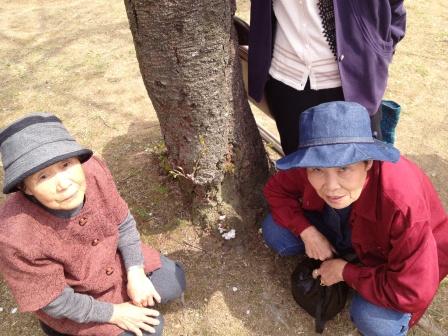 桜の根元から咲いている花を見つけられて、みんなビックリ!!