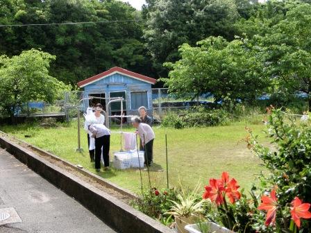 今回は『金の玉運びゲーム』!腰から紐でおたまをぶら下げ、そこに