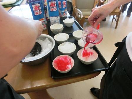 氷を見るだけで涼しい気がしてきます(ノ▽〃)利用者さんも、氷が削られるのを見てソワソワ♪