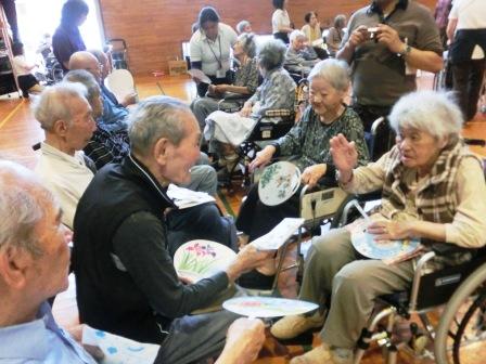 皆で歌をうたったり、職員のハンドベルに合わせて利用者様が歌ったり・・・中にはお尻で文字を書き、その字を当てるゲームをしてくれたところもあり、これには皆さん大爆笑ヾ(*'∀`*)ノ笑