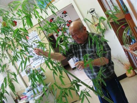 まだ何にも飾り付けをしていない笹を持たれて利用者様もニコニコ