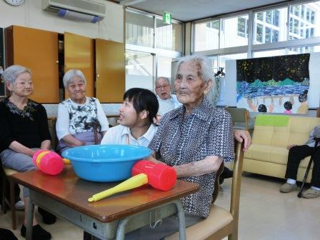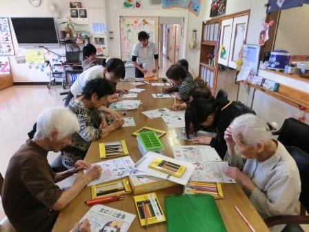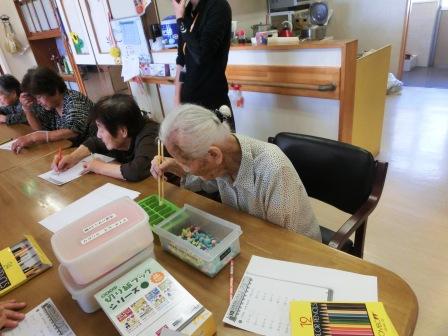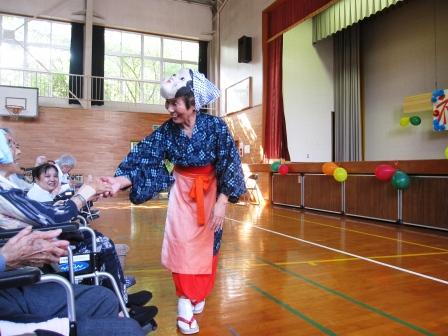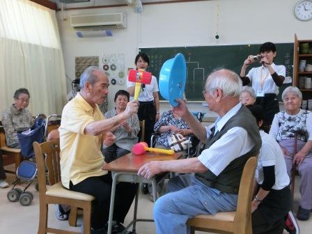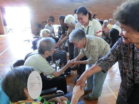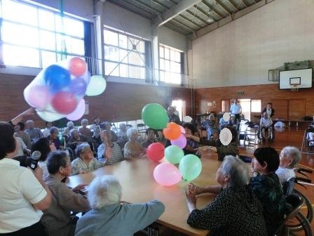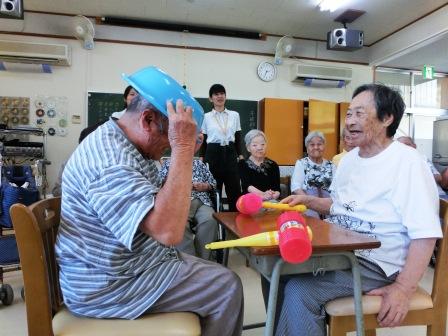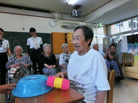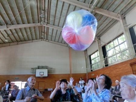 ゲームは「渚のバレー」。風船を大きな袋につめて、それでバレーボールをします。大きな風船が宙をまうので、いつもは興味を示してくれない方も、一生懸命手を伸ばして参加しておりました(*゚ー゚*)