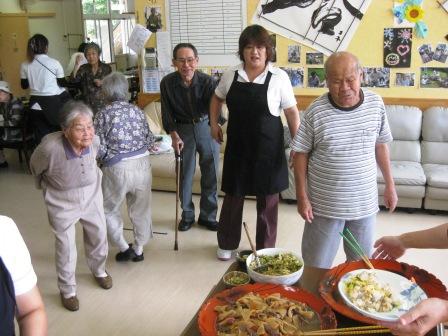 今月の誕生者は5名おられました。今月の主催者は小規模多機能ホーム(*゚ー゚*)小規模の利用者様より、誕生者様へプレゼントが渡され、その後は利用者様による歌のプレゼントが(`ω´)