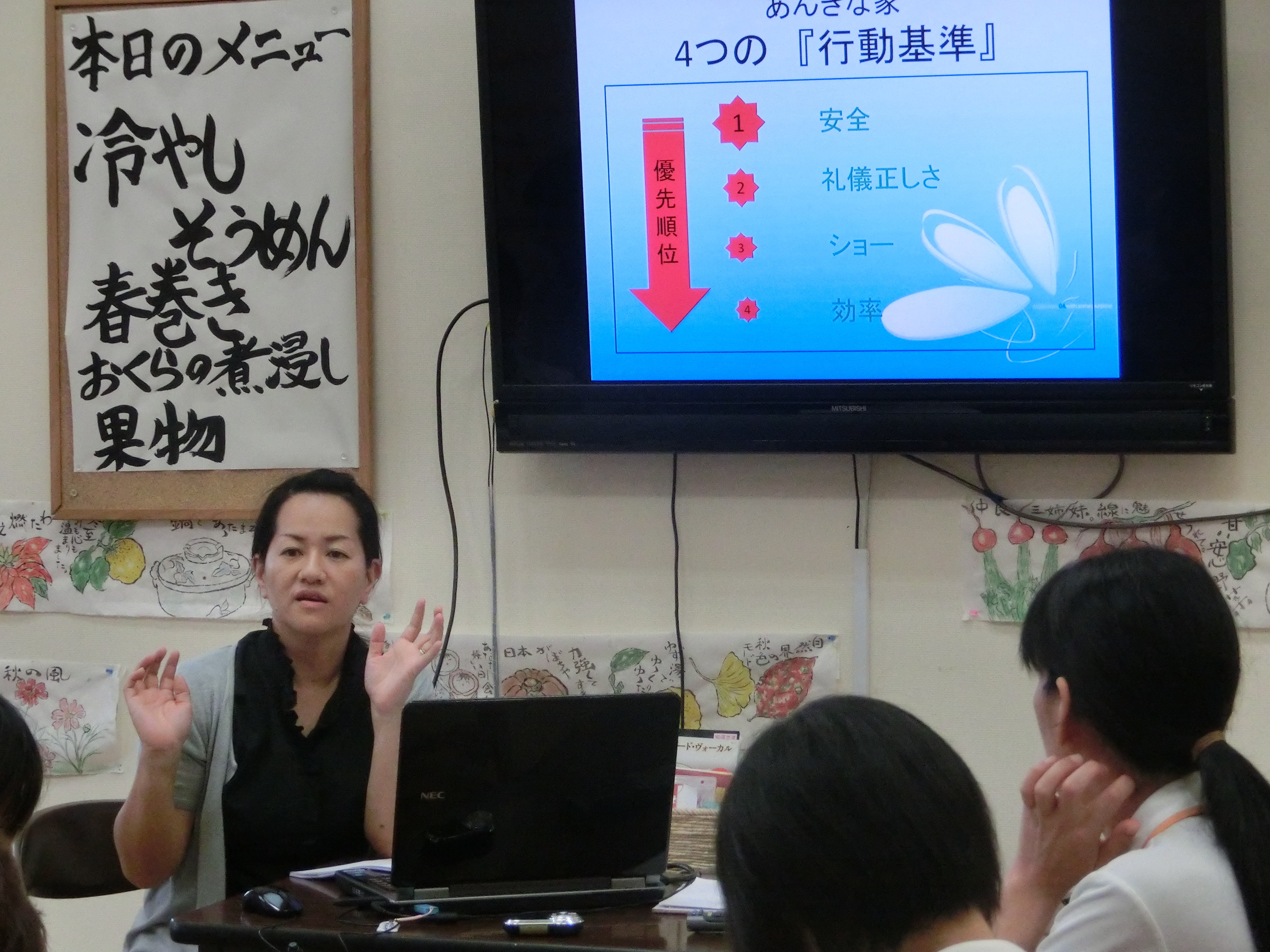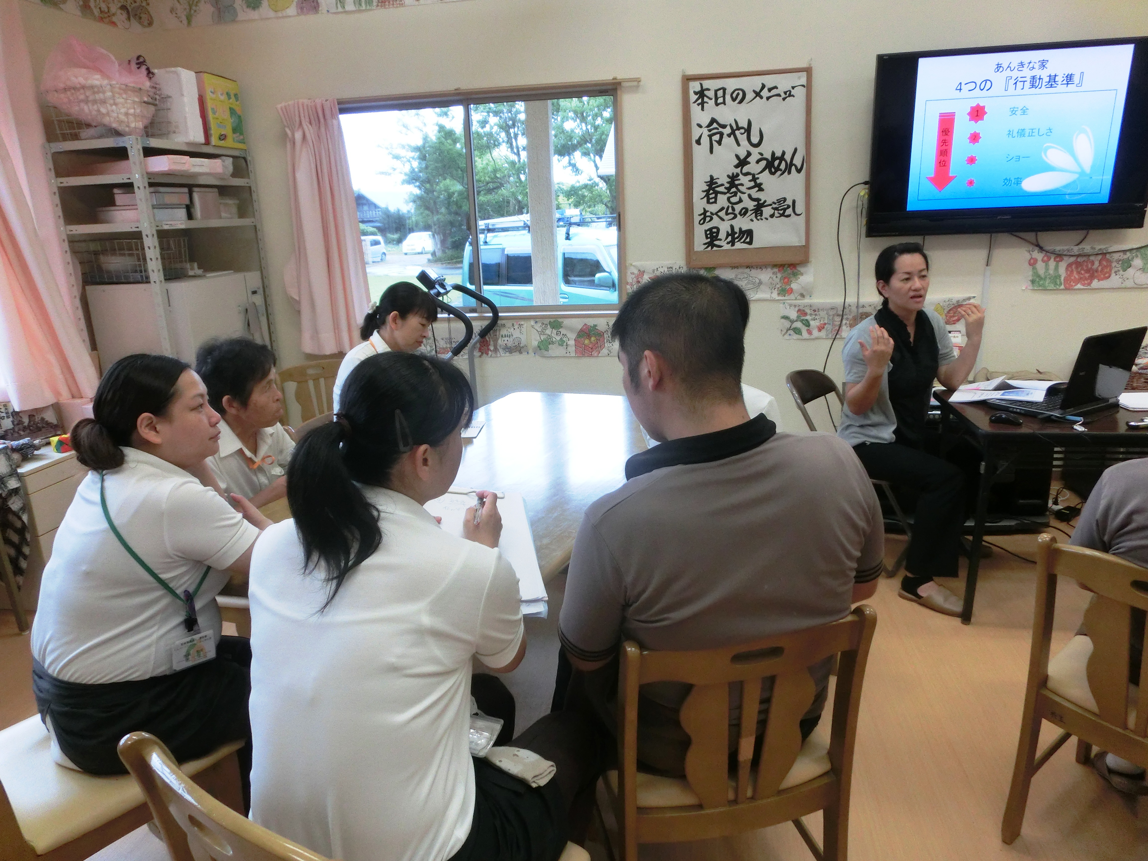 利用者様を第一に、日々安全な行動がとれているか、職務隊行優先になっていないか、改めて自分を振り返ってもらうために、定期的に勉強をやりました。