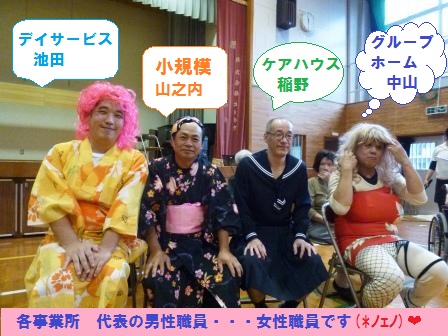 男性職員の仮装・・・いや、女装大会の始まりです(笑)