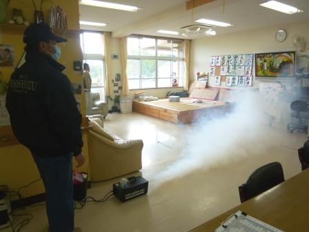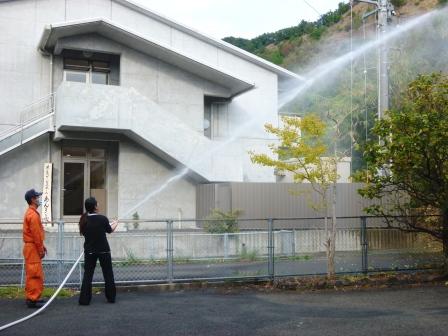 昼間の想定で、小規模多機能ホームの厨房より出火。今回は発炎筒を使っての訓練となりました。