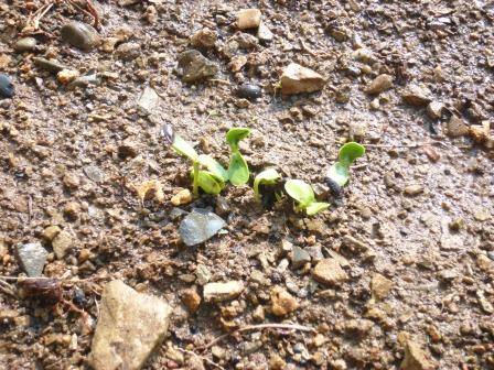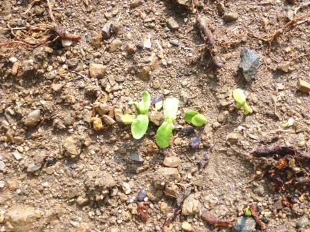と言われて見ると、何と!ひまわりの芽が出ておりました(*`ロ´ノ)ノ