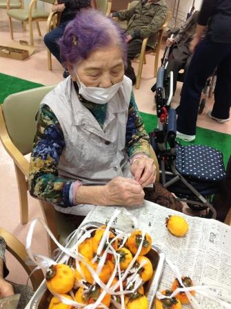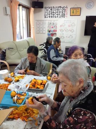 利用者様に皮をむいていただき職員がつるそうとしましたが