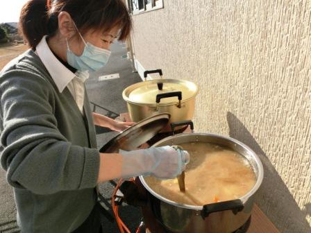 朝から職員が大鍋を運び、お昼に間に合うように準備。天気予報では「本日は雨!」と言われておりましたが、行いが良かったのか晴れてますヽ(`Д´)ノ