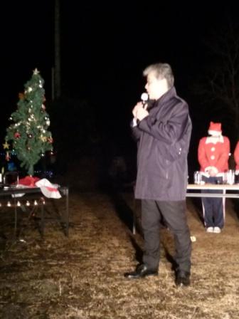 初めは泥谷市長のあいさつ、LED点灯から始まり