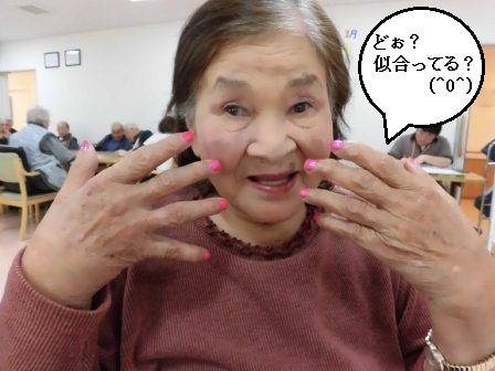 利用者様はもちろん、塗ってる職員も楽しくて大盛り上がりの教室になりました。歳は重ねてもやっぱり女性ですもの、お化粧って楽しいですよね♪(*^0^*)♪皆さん、出来栄えに満足してくれたのかな?