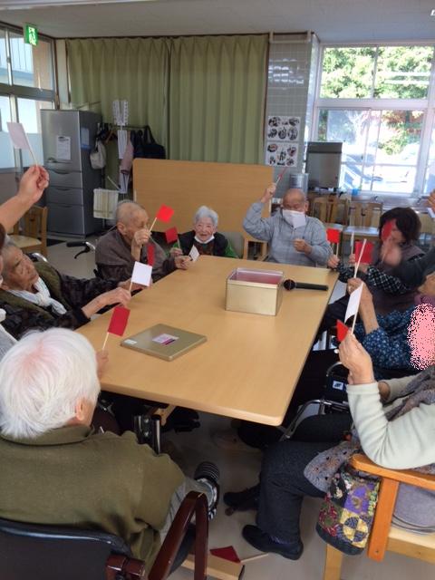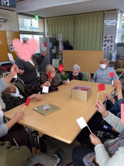 さぁ第二レクは、赤旗、白旗上げての頭と、身体を使ったレクです。