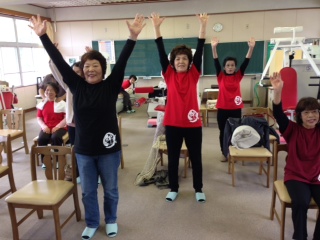 音楽に合わせて元気よく大きく広げて 1,2,3,4・・・