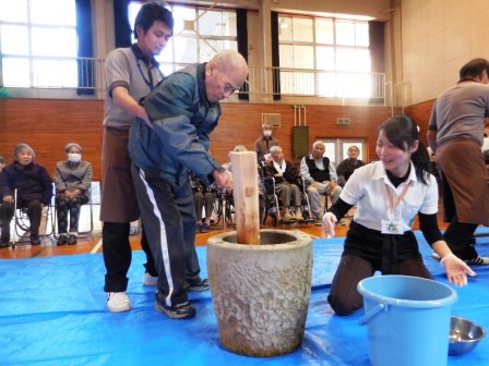 本日、あんきな家体育館にて餅つき大会を行いました。20151228163641.JPG