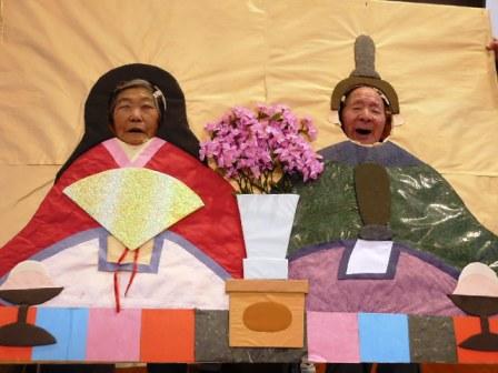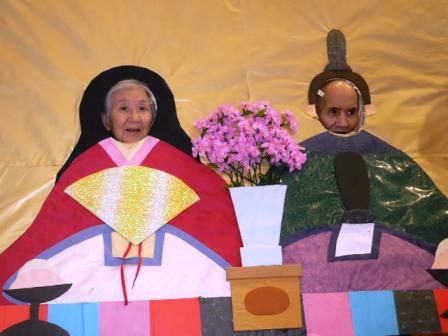 雛祭りのパネルで利用者様代表がお雛様とお内裏様になり記念写真!!!!!