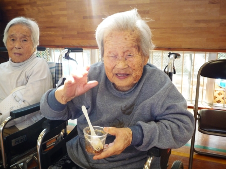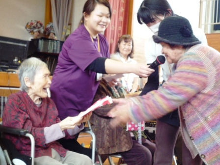 親しいご利用者からの「誕生日プレゼント贈呈」に 満面の笑顔が見らていました♪