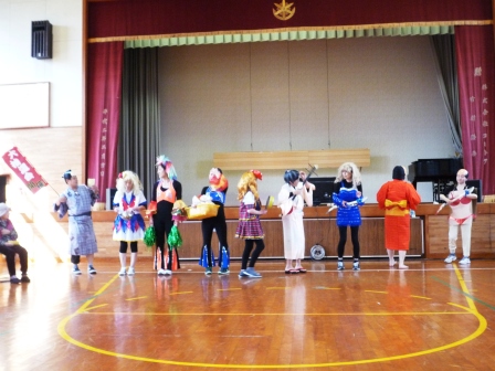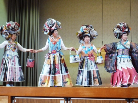下さり、新聞紙で作った衣装のファッションショーや踊りや歌を披露