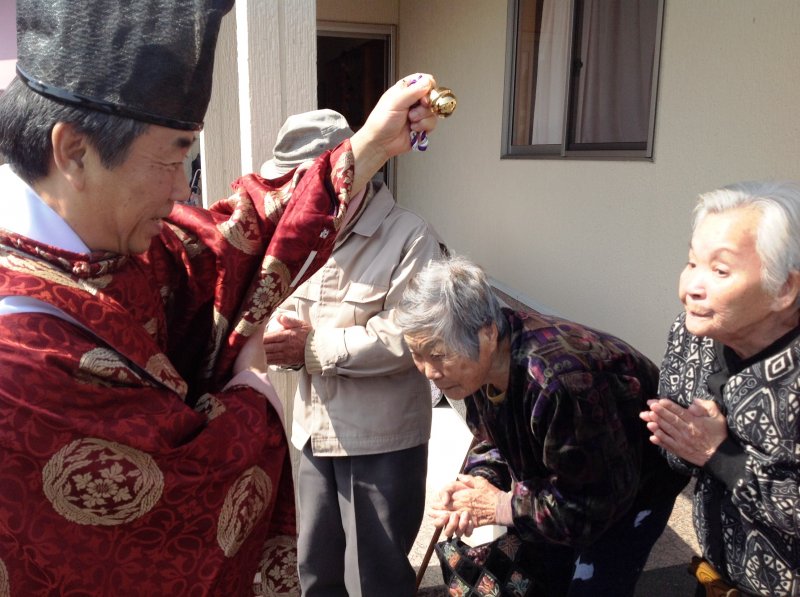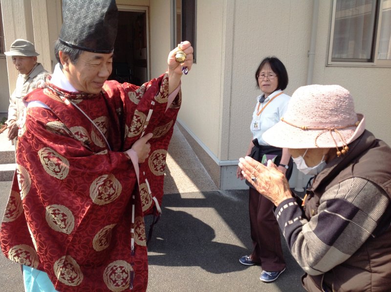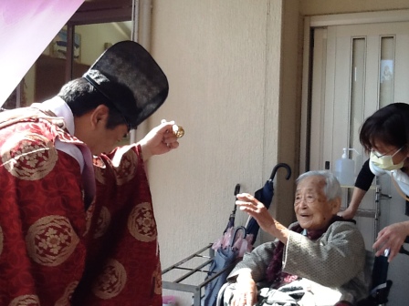 神輿を見に行かれた利用者の方々を同行していた神主様が拝んで下さいました!