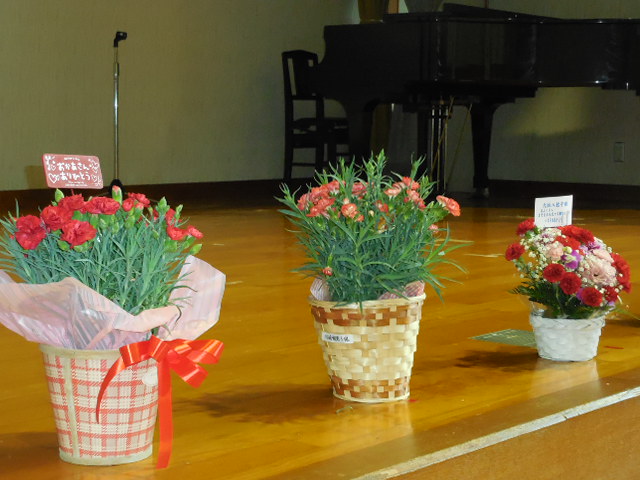利用者様に贈られた花鉢を舞台に飾らせていただきました(*^_^*)