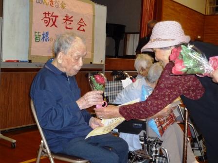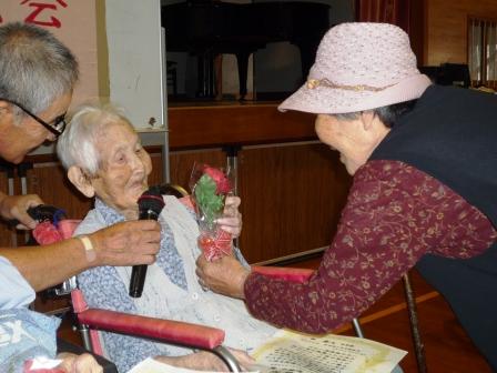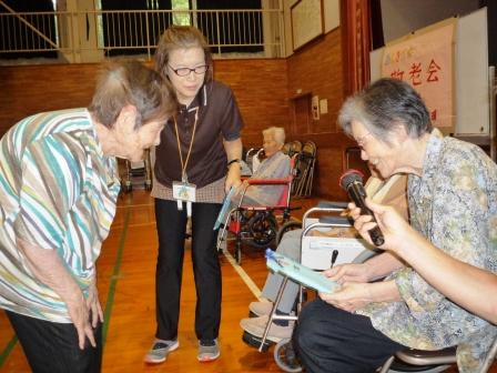 敬老会では100歳以上の利用者様の表彰式 が行われました