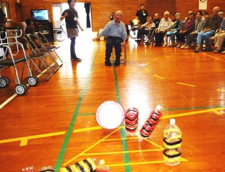 職員と一緒に声を出して、それぞれの上肢・下肢の運動をします。